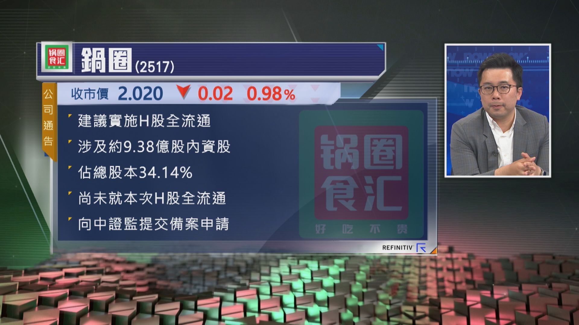 【Now財經台】鍋圈(02517)擬將全部約9.38億股內資股轉為H股,佔總股本34.14%。