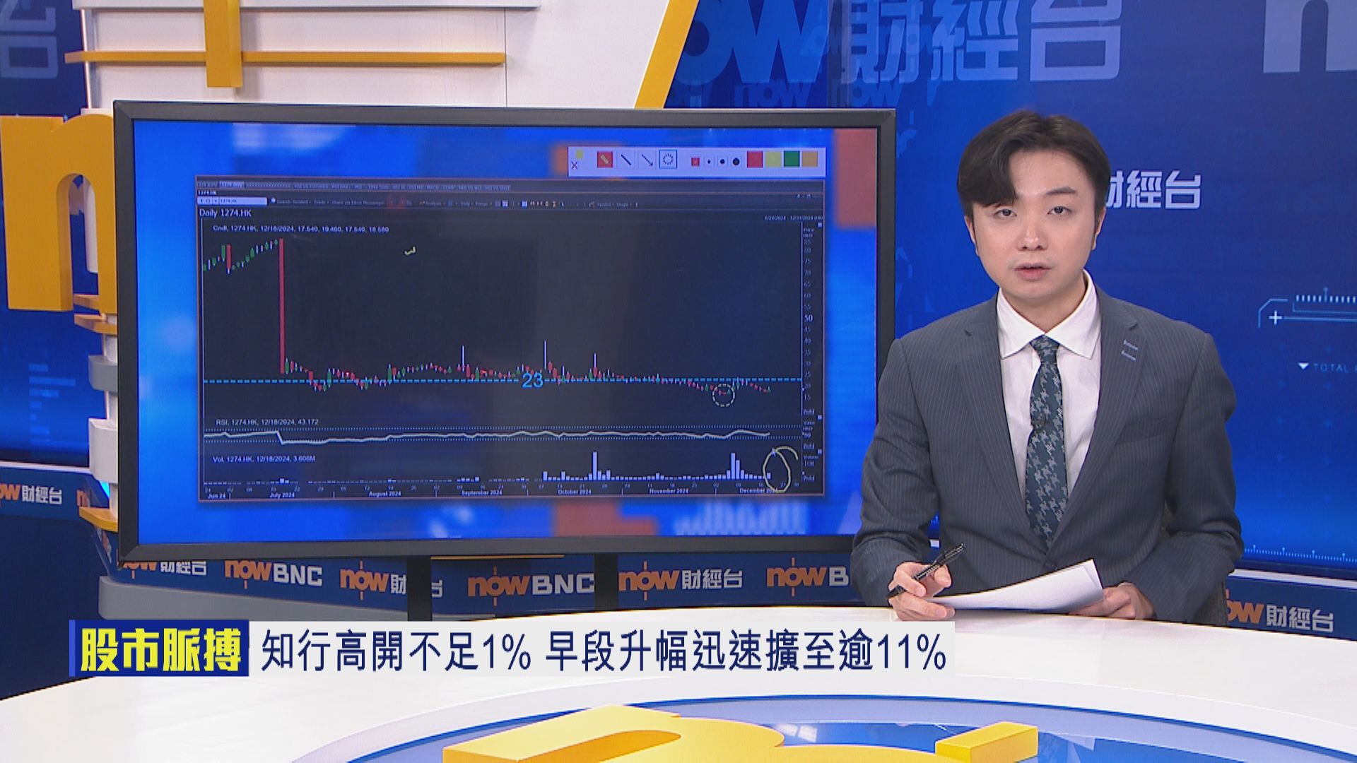 【Now財經台】自動駕駛概念股今日(18日)集體抽升,其中,知行汽車科技(01274)股價輕微高開後,升幅一度急速擴大至逾11%,高見19.46元,成交股數較過去100日平均增加3倍。