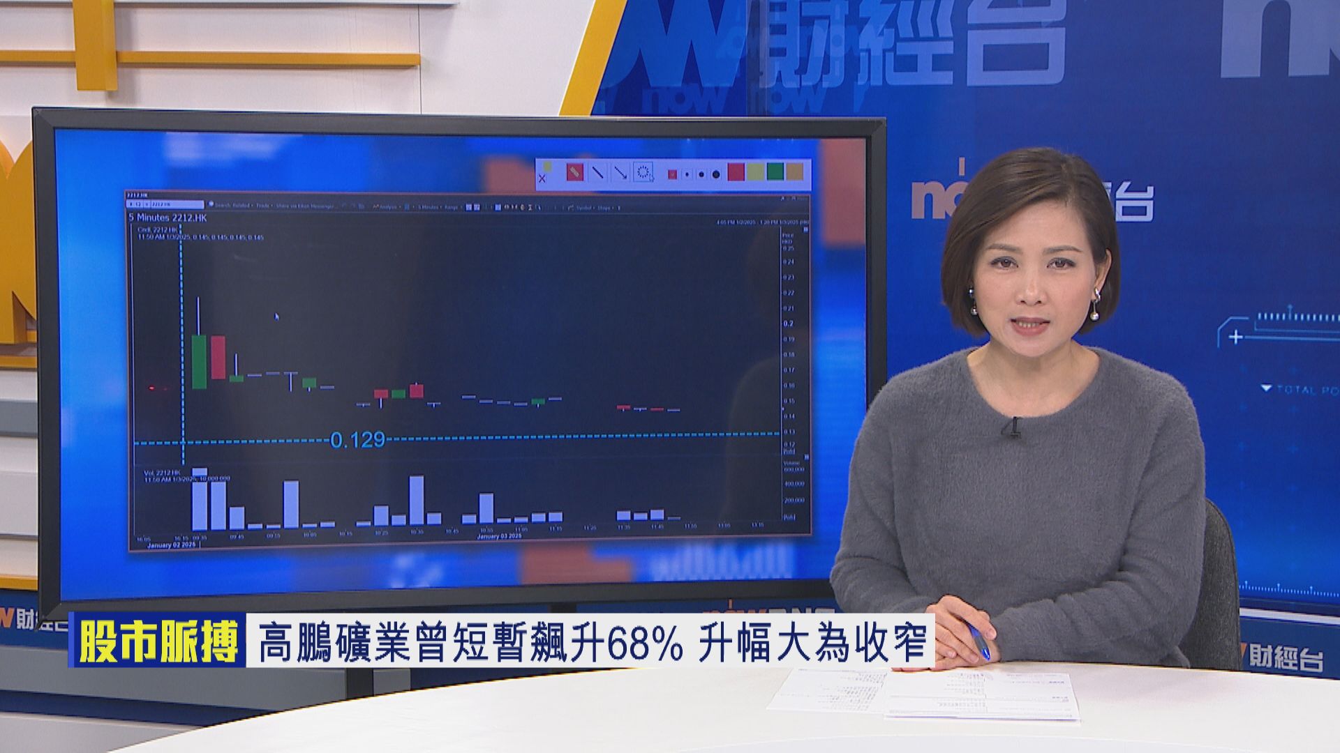 【Now財經台】毫子股高鵬礦業(02212)股價今朝(3日)裂口高開逾14%後,升幅一度擴大至近69%,高見0.218元,突破0.2元關口,但升幅好快已收窄至低雙位數,股份平日成交都十分疏落,即使股價今朝大升,但暫時成交金額僅逾80萬元,不過,成交股數已較過去100日同時段平均大增10倍。