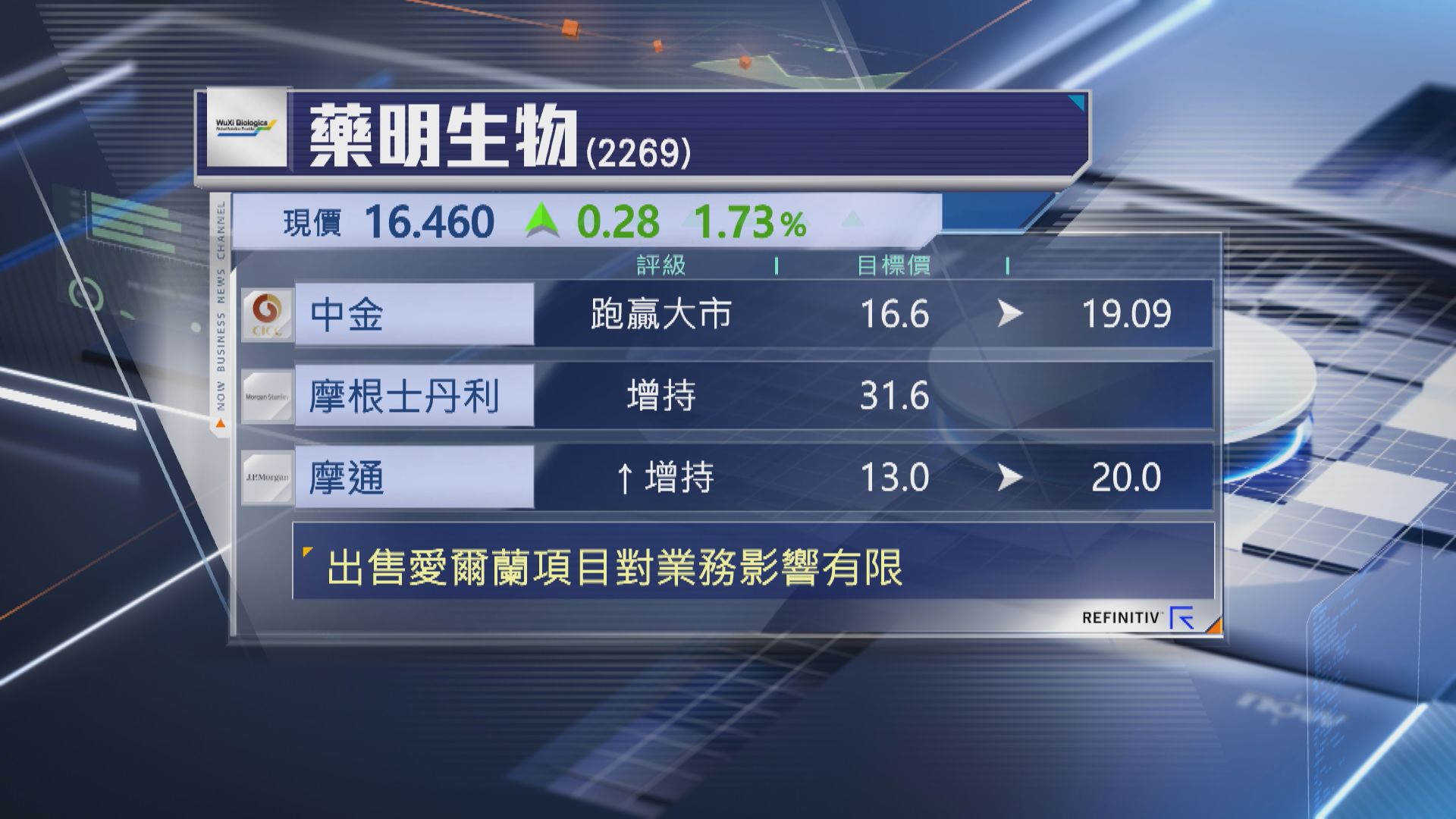 【Now財經台】藥明生物(02269)出售愛爾蘭項目,獲中金上調目標價。
