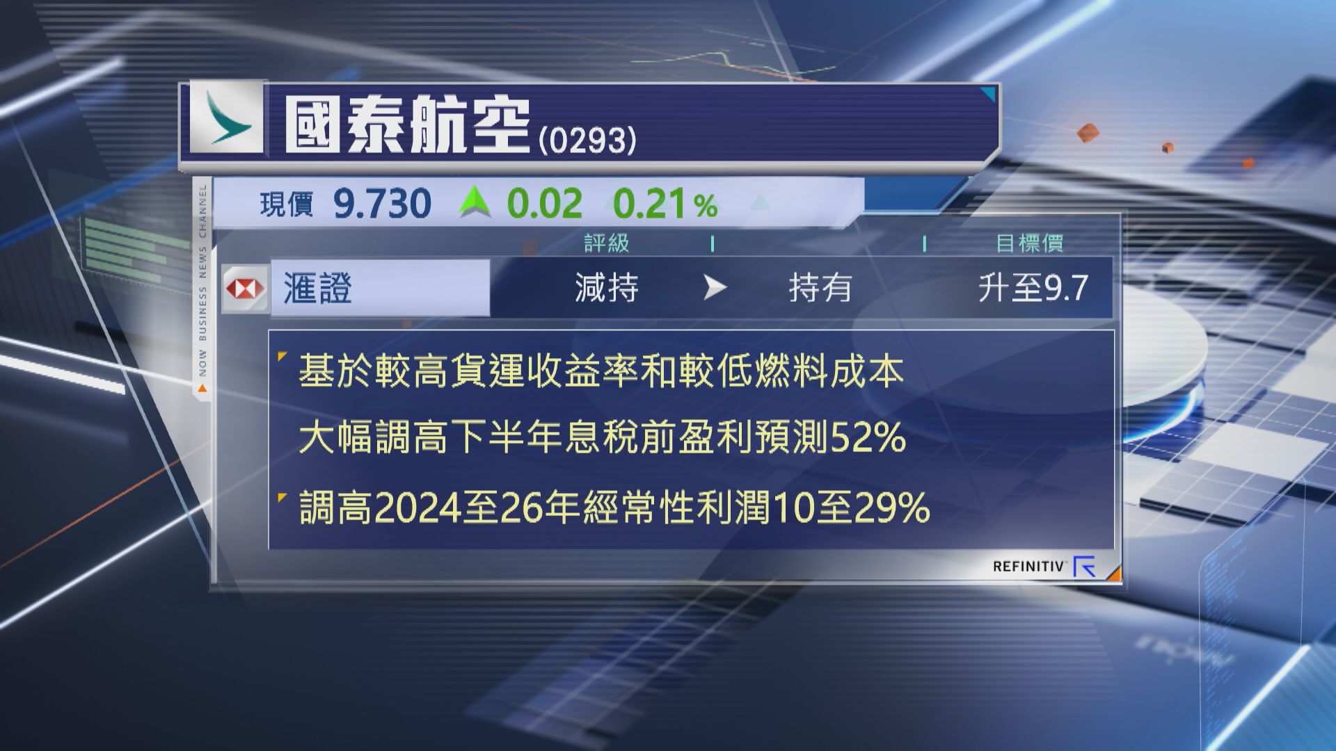【Now財經台】滙豐證券看好國泰航空(00293)2024年下半年盈利表現,上調評級及目標價。