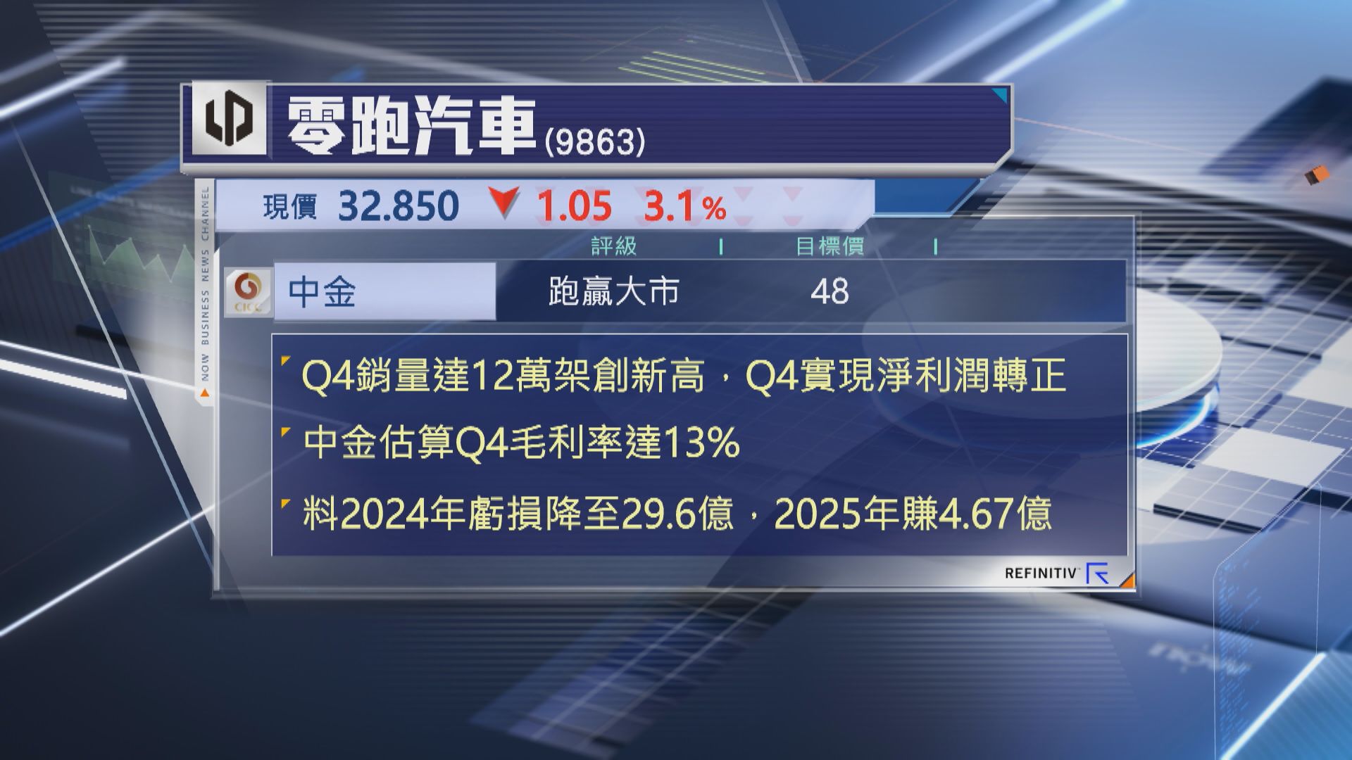 此外,該行調整零跑業績預測,估計去年度虧損約30億元人民幣,原本估計虧損近39億元人民幣,並預期2025年度實現全年盈利4.7億元,2026年度盈利則增至逾21億元人民幣。