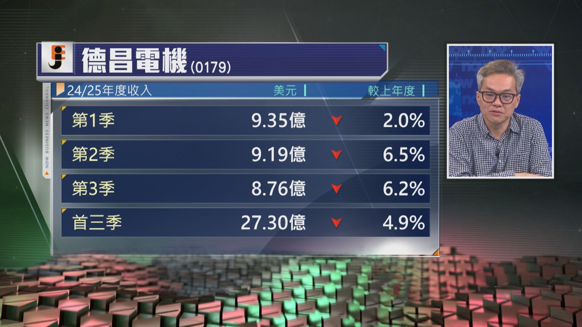 【Now財經台】德昌電機(00179)24/25年度首三季收入減少4.9%,並預期全年度收入錄得中單位數跌幅。