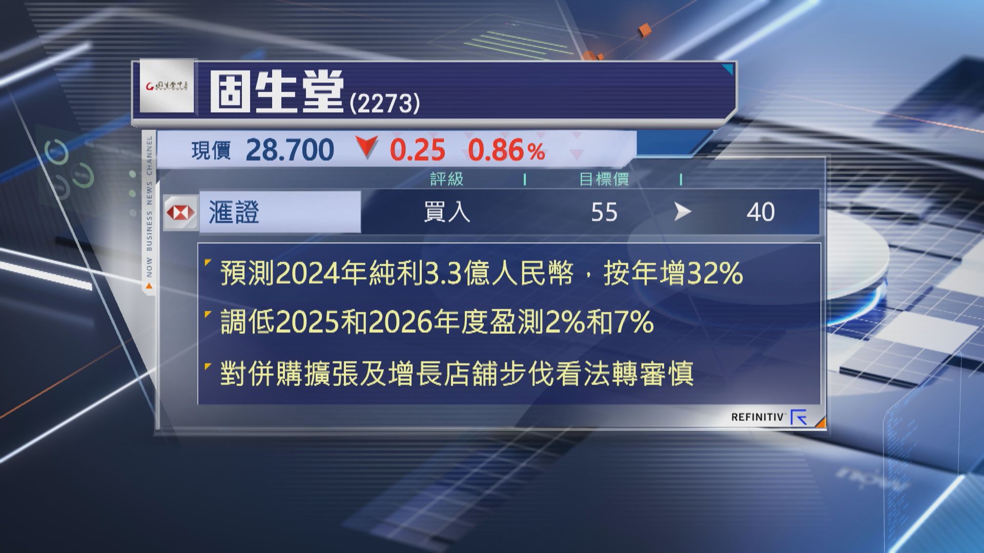 由於對集團併購、擴展及增開線下店舖步伐看法轉趨審慎,滙證輕微下調固生堂2025及2026年度純利預測2%和7%,2024年度純利預測則維持3.3億元人民幣,按年增長30%。
