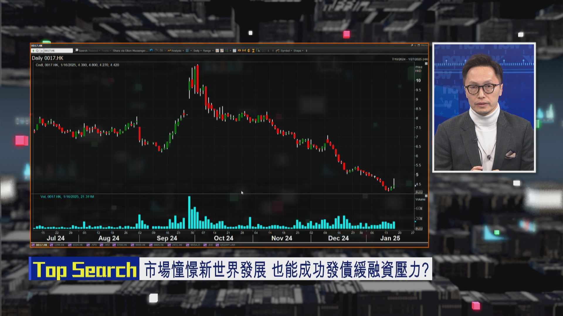 椽盛資本投資總監曾永堅指,雖然新世界股價今早(16日)顯著反彈,但升幅急速收窄。佢又認為,市場唔會對新世界有太大憧憬,因為公司現時面對唔少問題,包括內地及本港樓市前景唔樂觀,本身又有龐大債務問題、負債比率偏高,呢啲因素會持續困擾新世界股價。
