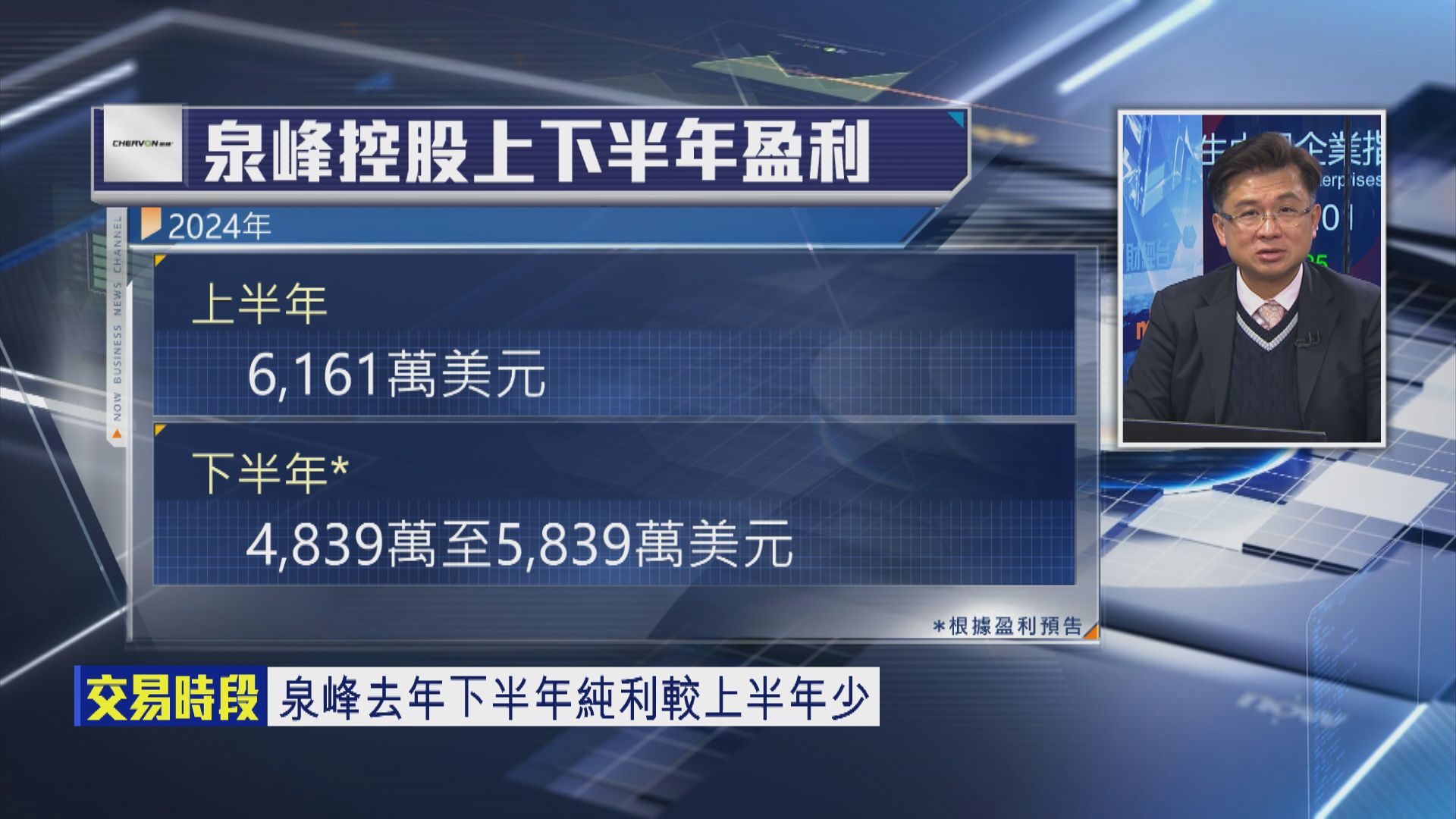 【Now財經台】泉峰控股(02285)股價今日愈升愈有,午後一度大升16%,高見19.86元。集團昨日(17日)發盈喜,預期2024年轉賺最多1.2億美元,睇返集團去年上半年,收入僅增長10%,估計全年最多增長30%,而毛利率及經營效率都有改善,不過,集團預期,下半年純利將少過上半年,到底係咩原因?
