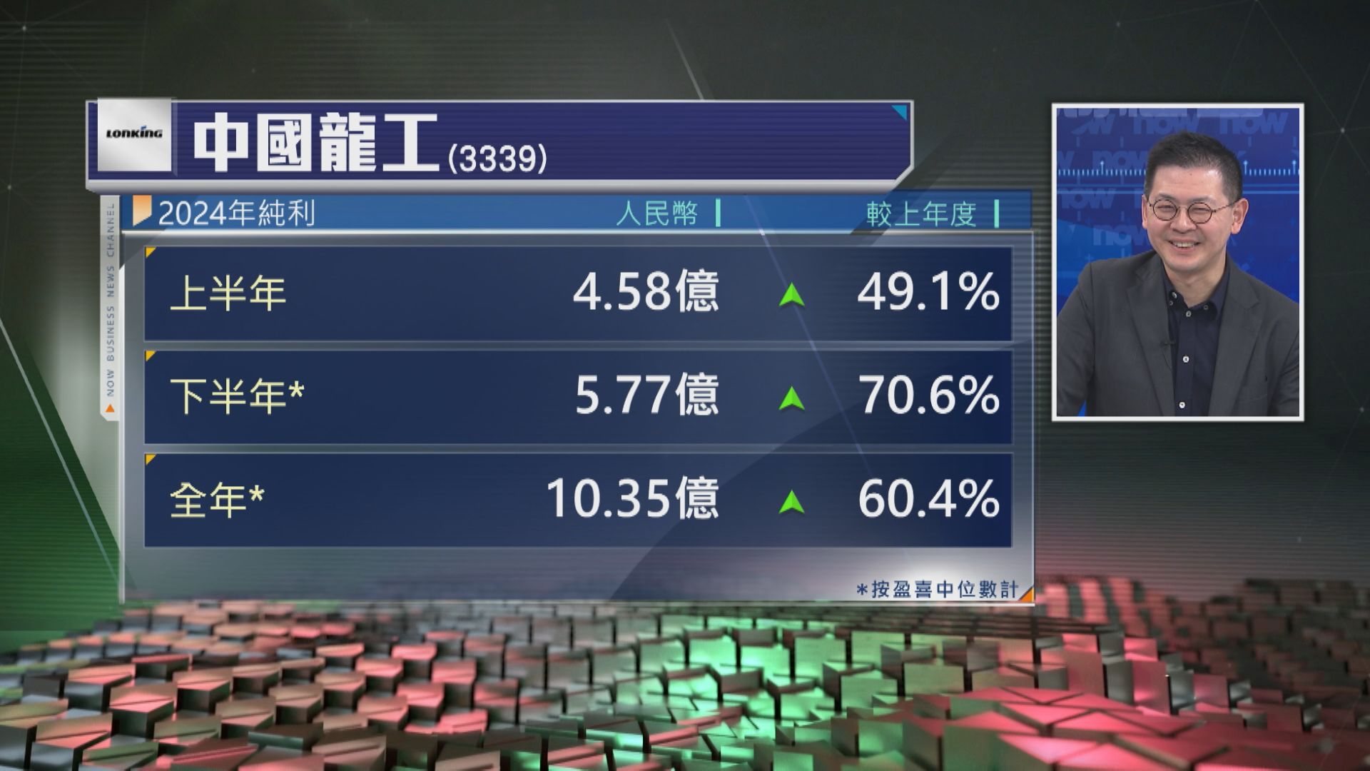 【Now財經台】中國龍工(03339)發盈喜,預期去年賺10-10.7億元人民幣,按年增長55-66%。