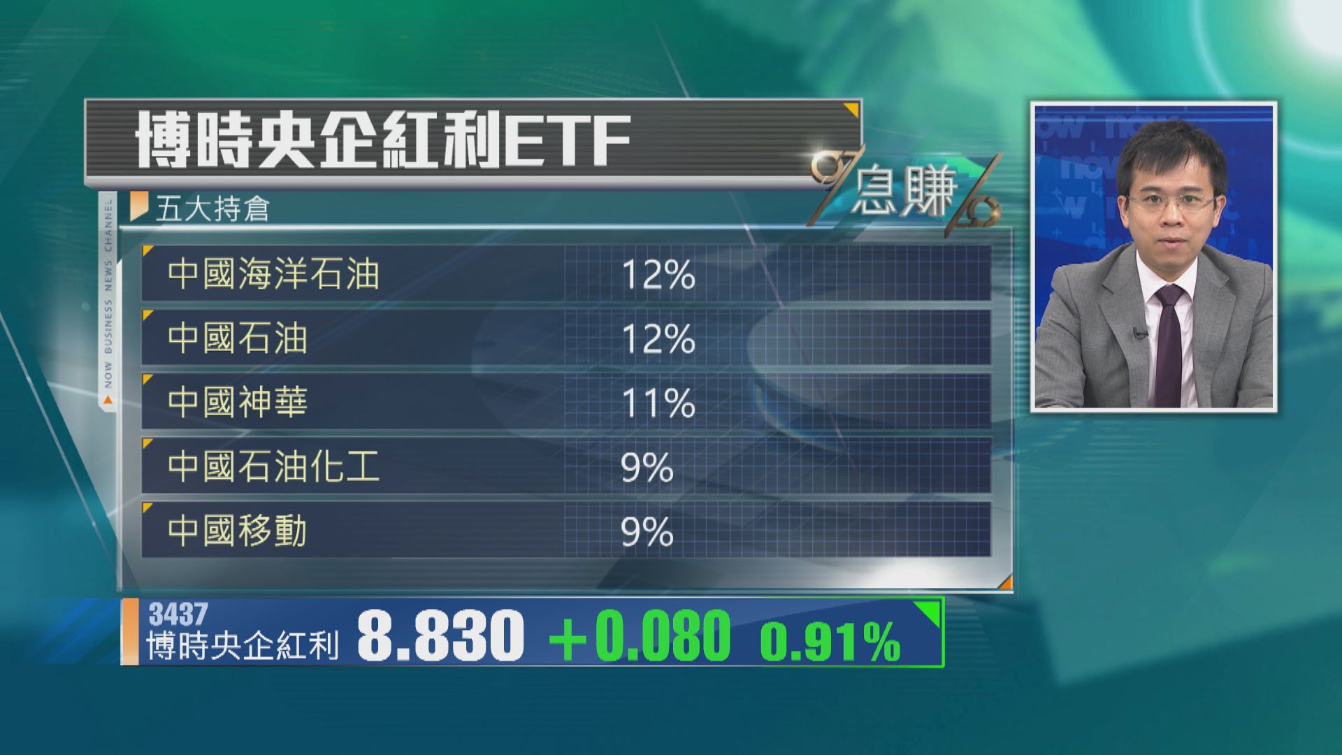 【Now財經台】農曆新年將至,港股今個星期只有1日半市,恒生指數今日(27日)喺期指結算日企穩20000點以上,除咗科技股,中字頭股份亦係升市功臣之一,上周內地多個部委開聯合記招,會上重申要求央企1年要多次分紅,並要提高分紅等,如果想賺息又賺價,係咪揀中特估比較好?港股唯一1隻追蹤央企嘅交易所買賣基金(ETF)係博時央企紅利(03437),追蹤指數包括50隻唔同行業嘅央行,而能源公司佔近半,金融就只佔約2%,係唔係一個好嘅選擇?