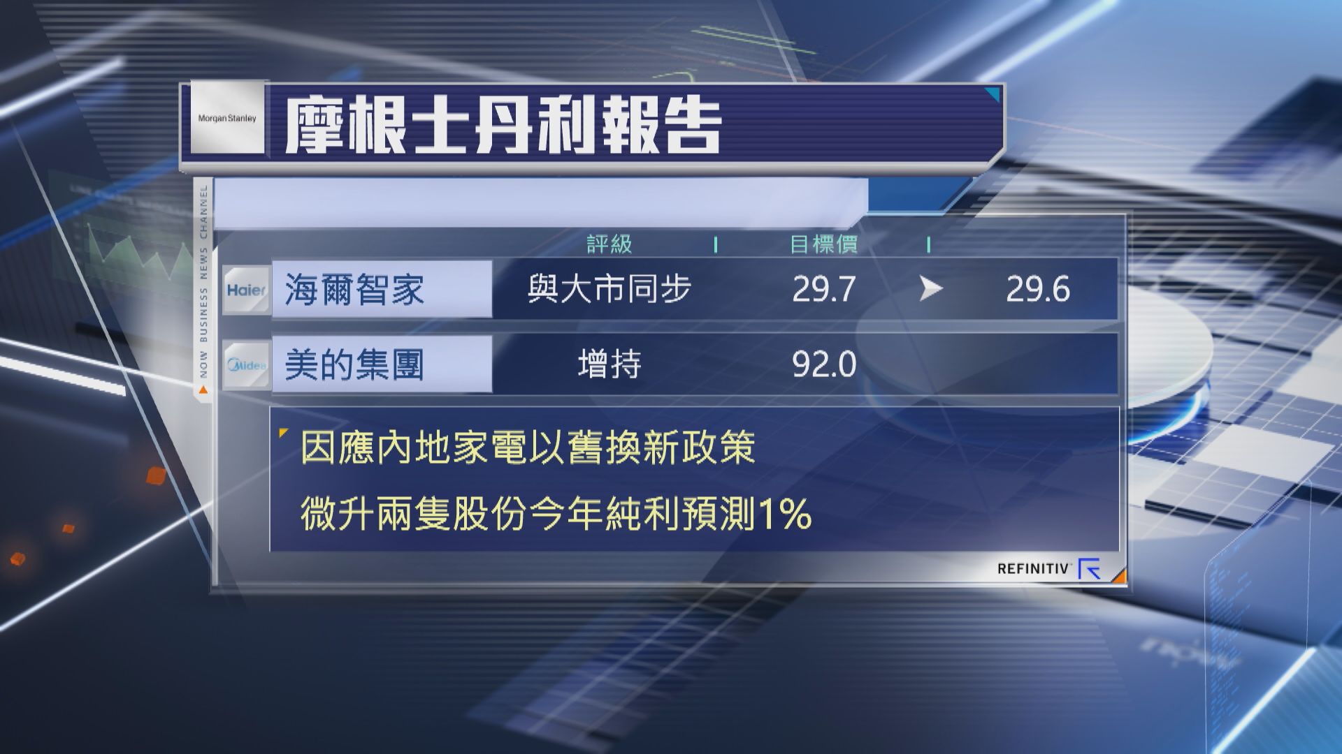 【Now財經台】摩根士丹利輕微下調海爾智家(06690)目標價。