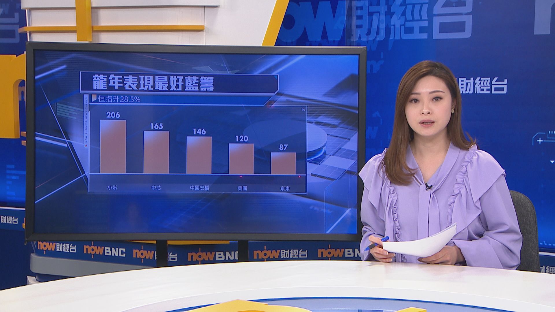龍年暫時表現最好藍籌,依次為小米集團(01810)升2.5倍、中芯國際(00981)升1.6倍、中國宏橋(01378)升1.46倍、美團(03690)升1.2倍、京東集團(09618)升87%。