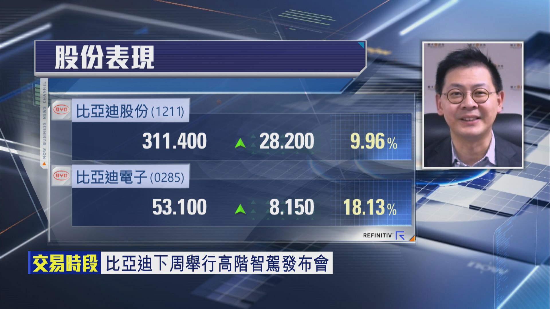 耀才證券研究部總監植耀輝指,比亞迪去年銷售理想,盈收仲好過Tesla,由於比亞迪智能化發展落後於同業,所以當比亞迪喺智能化方面有諗法時,市場都會睇得好正面,而投資者又會憧憬比亞迪嘅賣點多咗好咗,就會令股價向好。