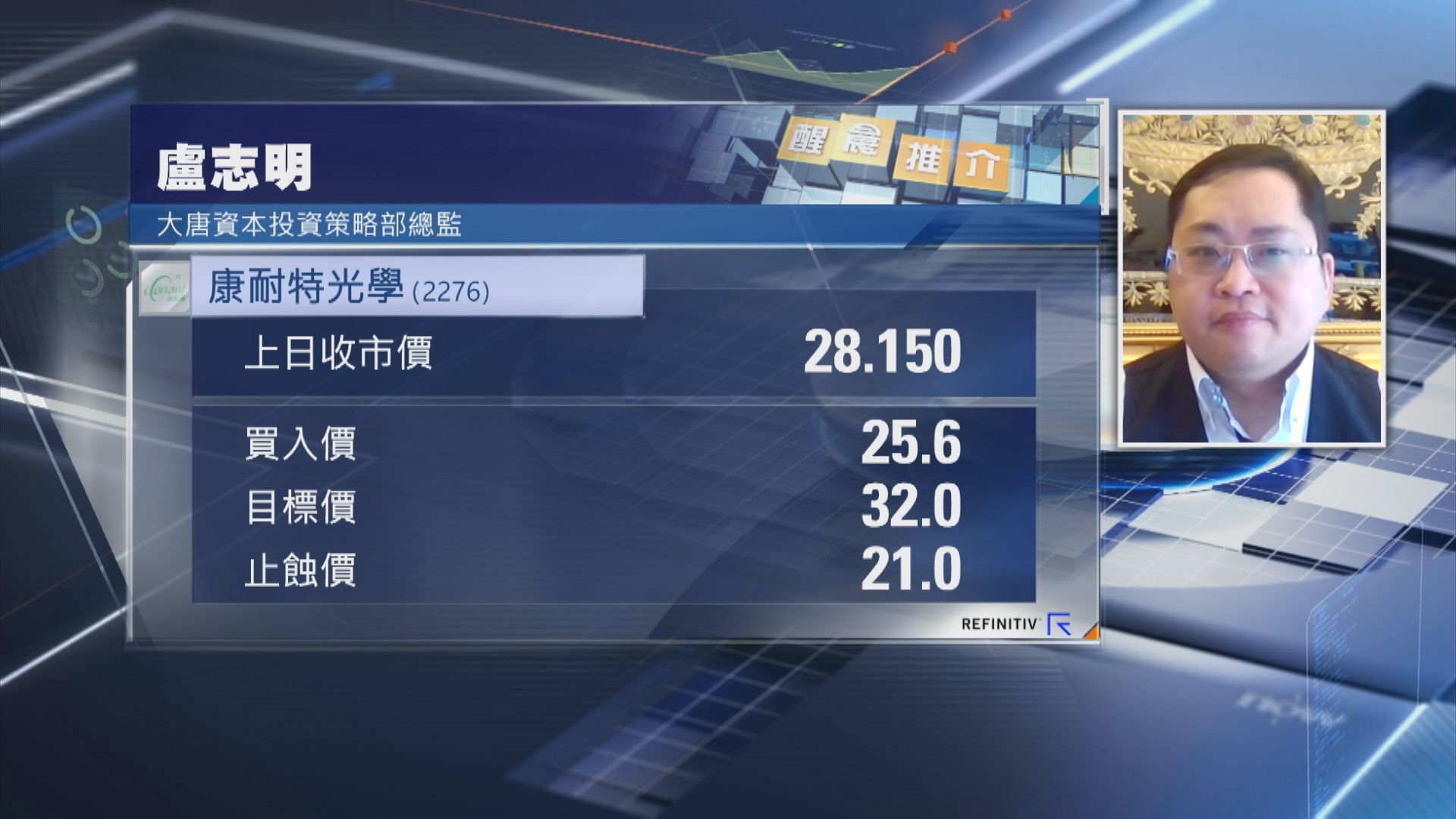 【Now財經台】大唐資本投資策略部總監盧志明推介康耐特光學(02276)。