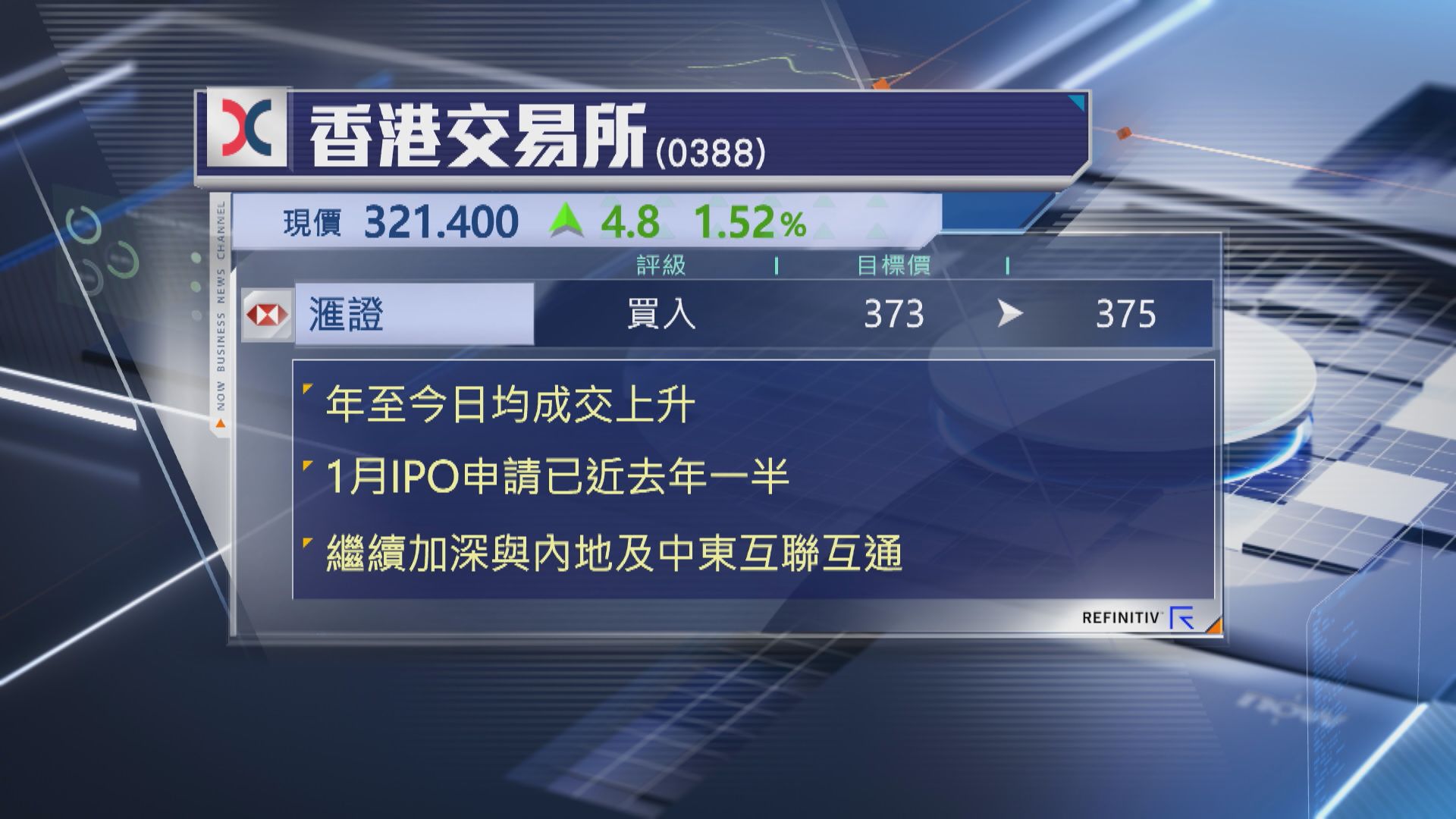 【Now財經台】滙豐證券輕微上調港交所(00388)目標價,最新看375元,維持「買入」評級。