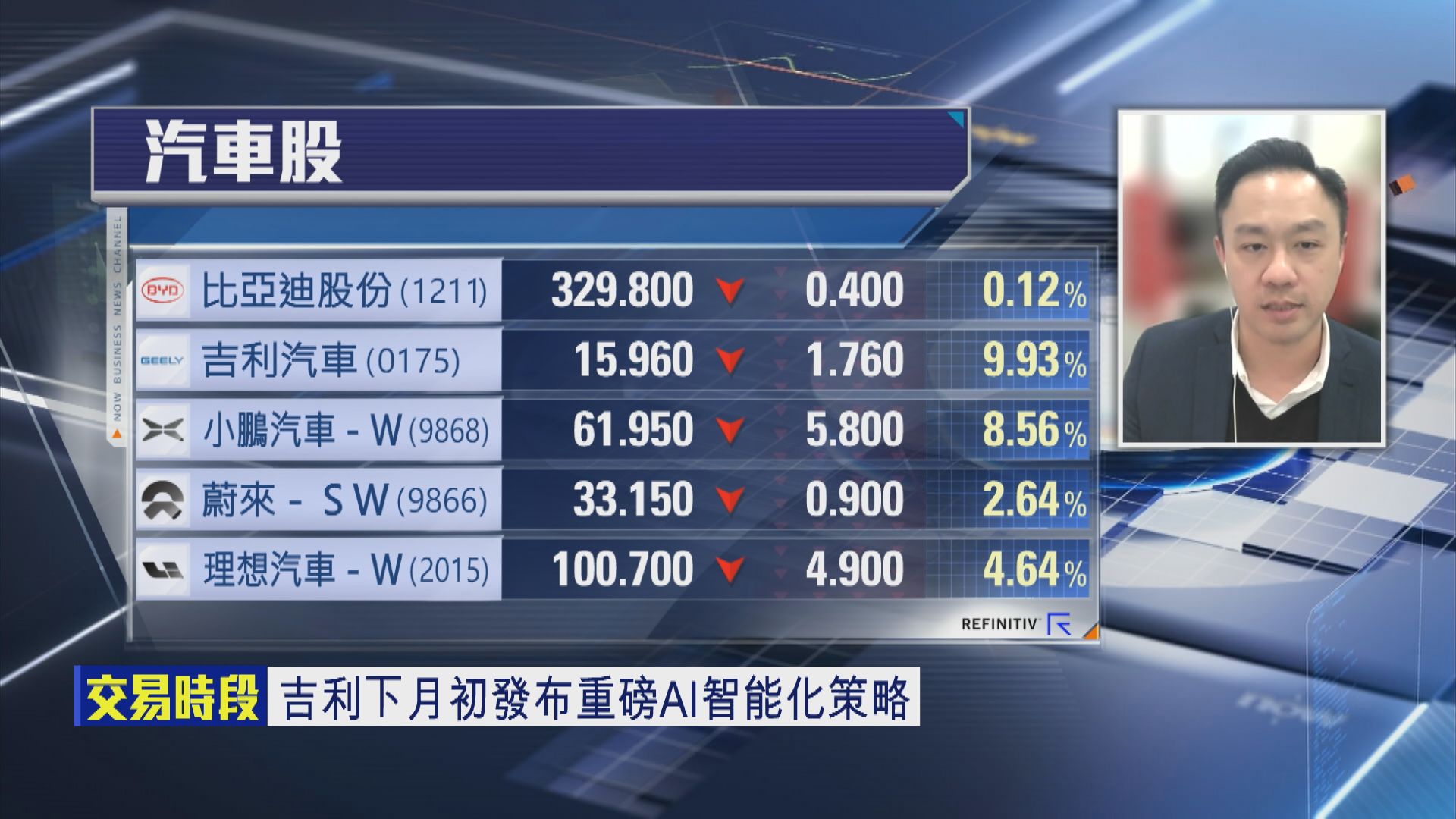 【Now財經台】吉利汽車(00175)去年總銷量約217萬架,按年增長25%,創歷史新高。集團今年目標係新能源車業務全面實現盈利,新能源車業務今年可唔可以全面扭虧?比亞迪股份(01211)最新發布嘅智能駕駛系統「天神之眼」對吉利嘅影響有幾大?