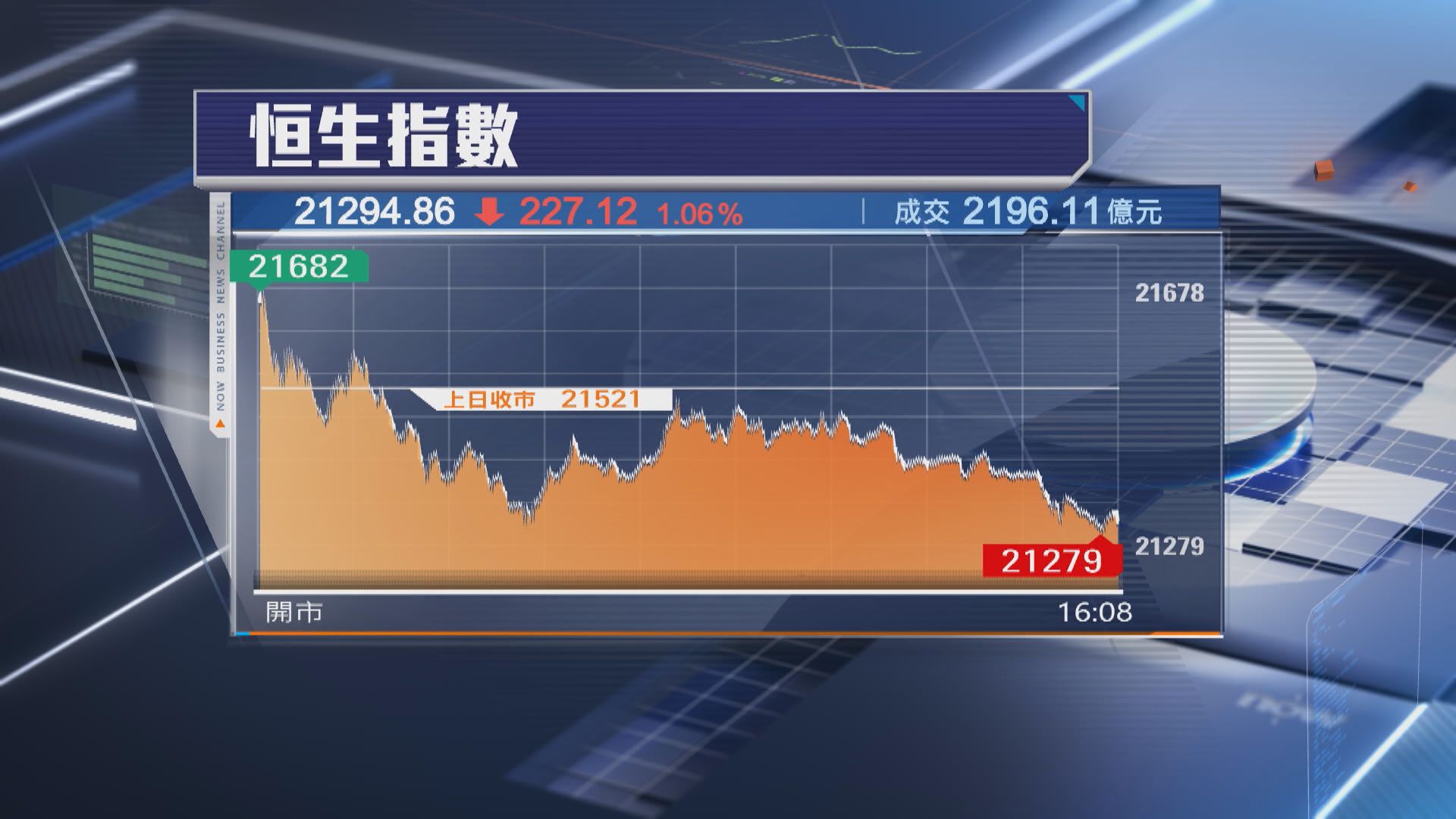 【Now財經台】本港股市結束三連升,雖然恒生指數一度衝上4個月高位,但之後回套,收市挫逾200點。
