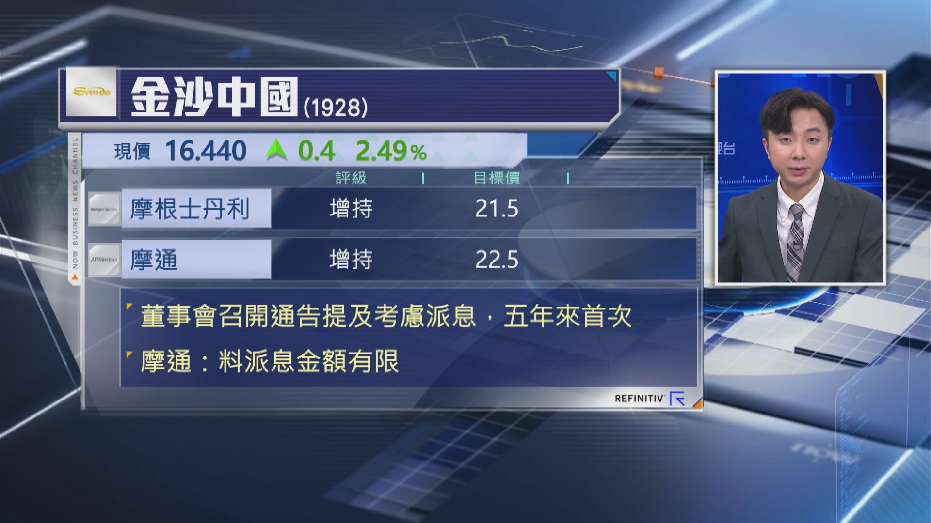 【Now財經台】大行預期,金沙中國(01928)或有機會恢復派息。