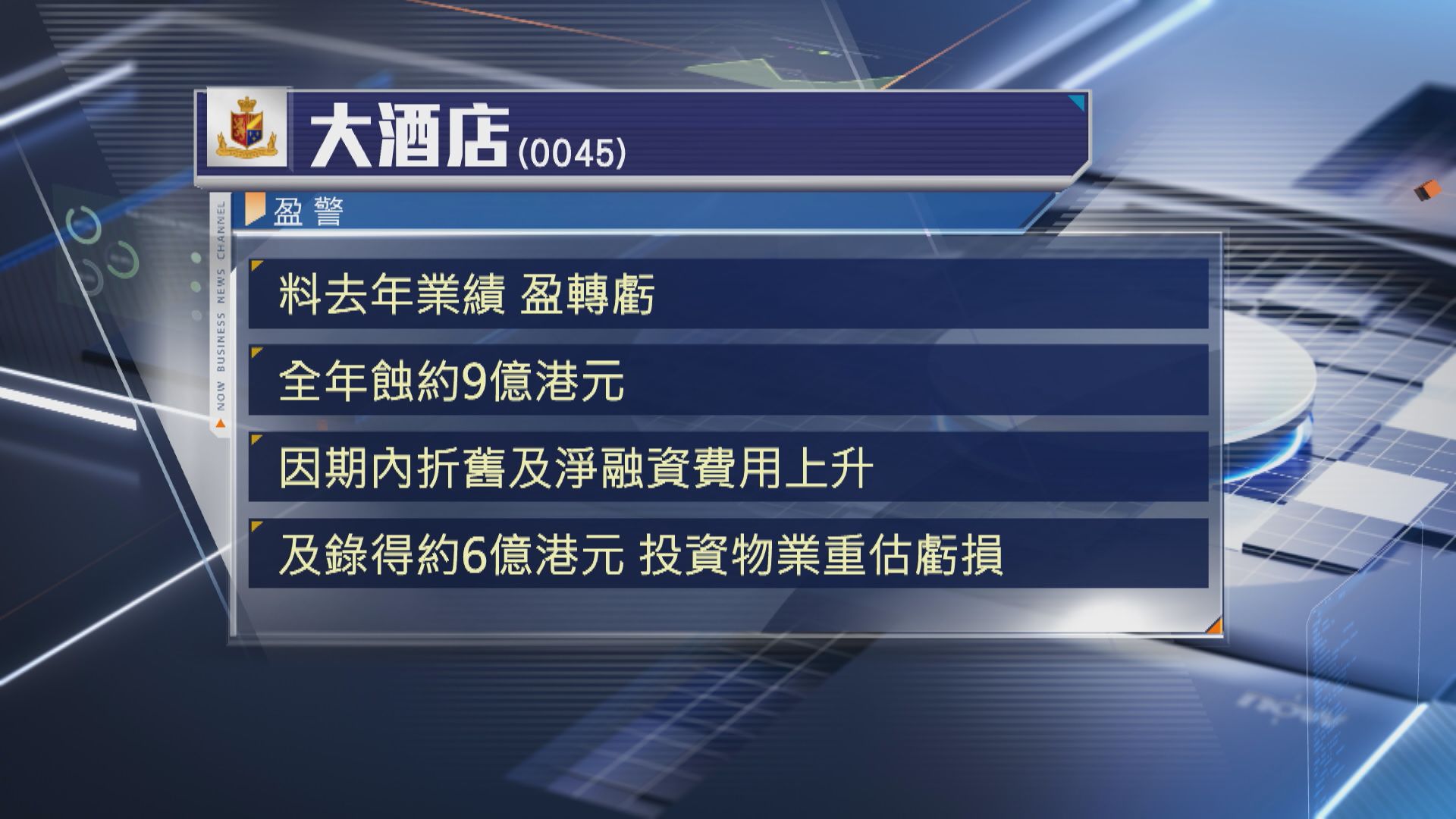 【Now財經台】大酒店(00045)發盈警,預期全年蝕約9億元。
