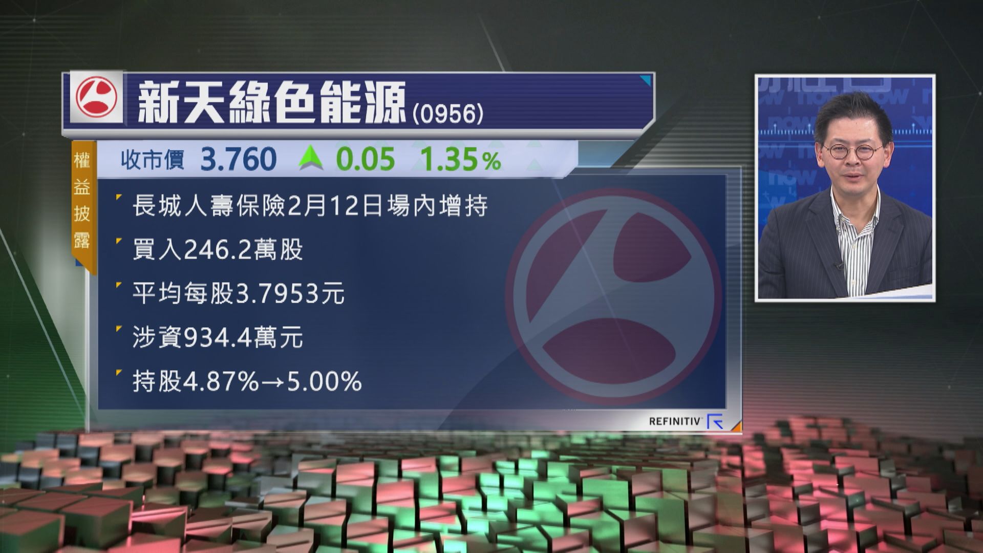 【Now財經台】權益披露顯示,新天綠色能源(00956)近日先後獲越秀產業投資及長城人壽增持股權,持股均增至5%或以上。