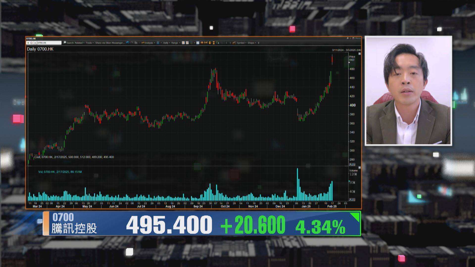 騰訊確認旗下即時通訊工具微信,接入中國人工智能(AI)模型DeepSeek,刺激今早(17日)股價,開市不久爆上500元,高見512元,後市上升空間有幾多?甚麼時候才是合適入市時機?