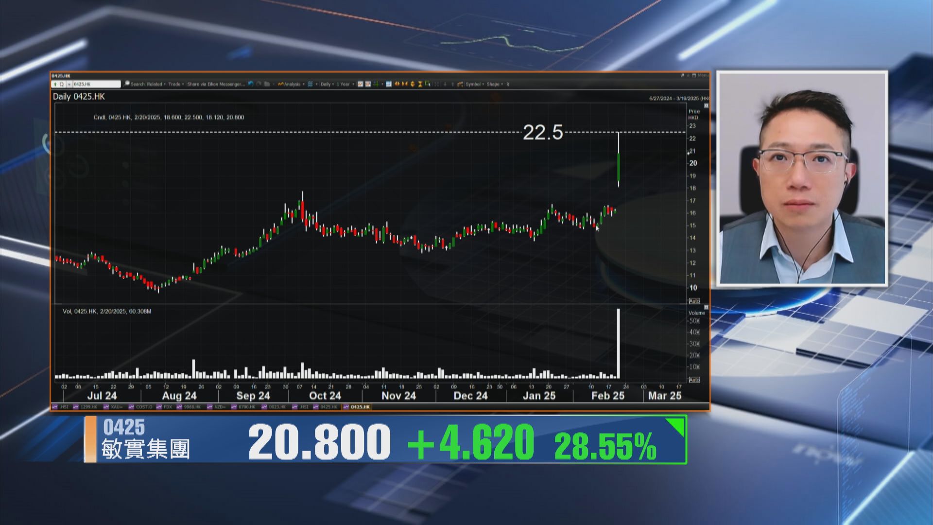 股價方面,敏實現價預測市盈率(PE)達10倍,而汽車零部件製造商PE一般大約5至10倍,反映敏實現時估值偏貴,股價差不多到頂,所以於今日高位,22.5元有不少沽壓,現階段上望空間不大。