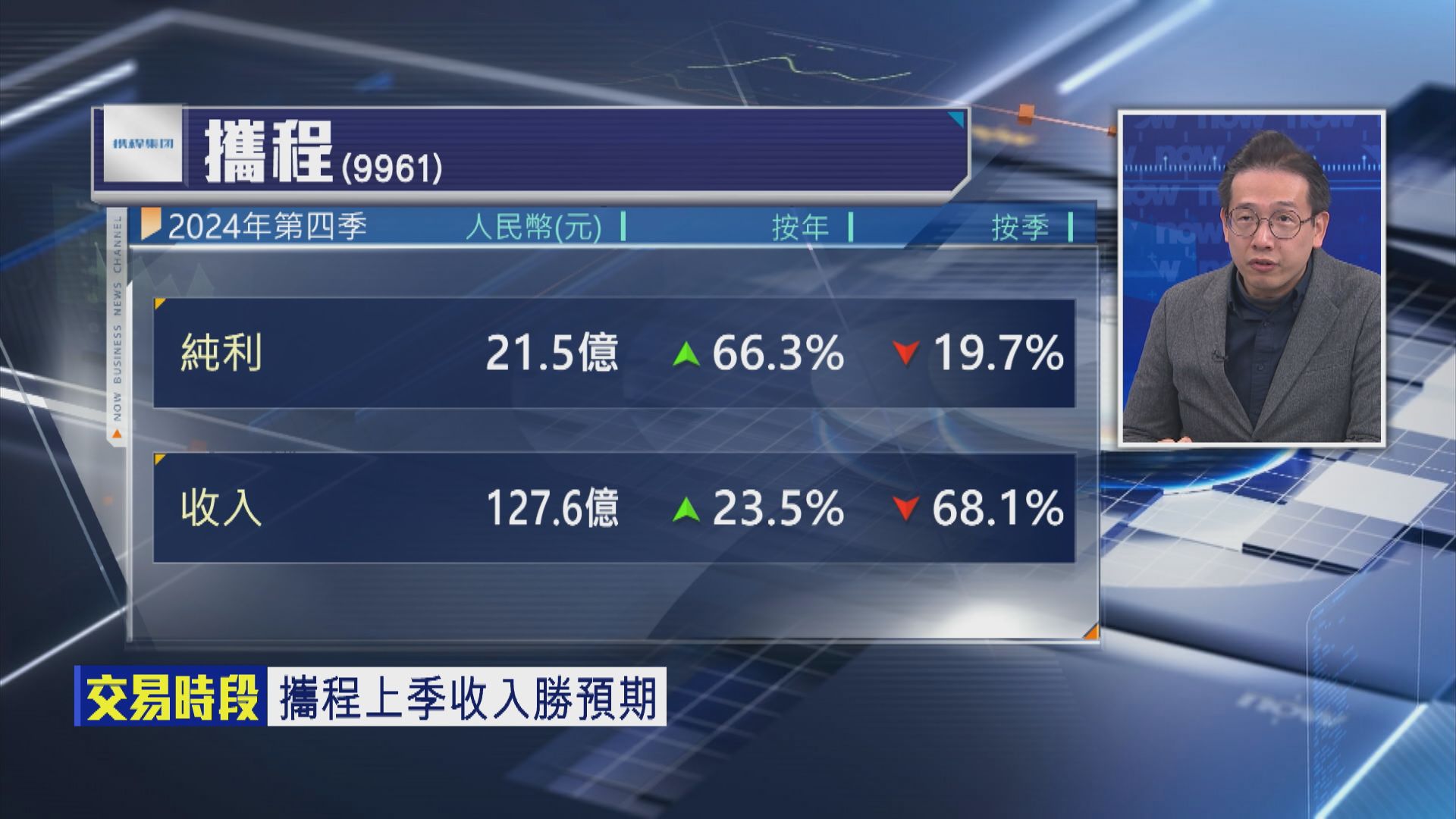 【Now財經台】攜程集團(09961)今朝(25日)開市前出咗業績,股價午後愈跌愈多,一度大跌逾12%,低見459.4元,包辦表現最差藍籌及科指成分股。雖然去年純利及收入都有增長,但全年增速唔及去年上半年,反映受下半年增長放緩拖累,呢個係咪市場唔收貨嘅地方?點睇集團未來增長動力?