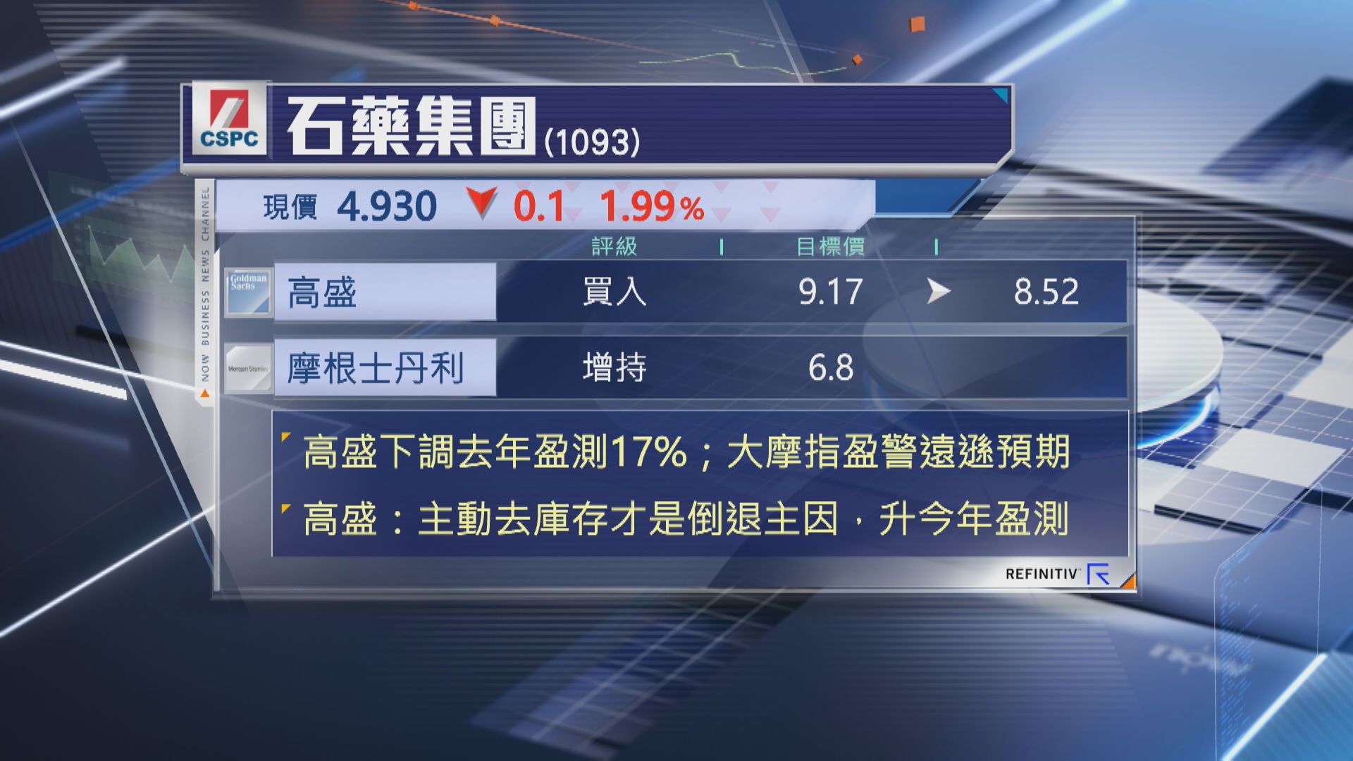 【Now財經台】石藥集團(01093)發盈警後,被高盛下調目標價,由9.17元降至8.52元,但維持「買入」評級,並因應盈警下調去年盈利預測17%。