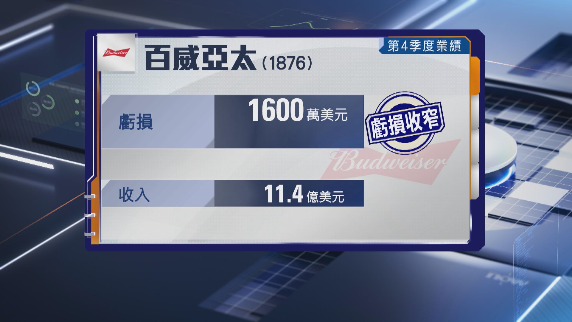 【Now財經台】百威亞太(01876)上季出乎預期錄得虧損,去年盈利亦低於市場預期。不過,集團股價今早(26日)大升,一度高見8.9元,勁升逾13%。