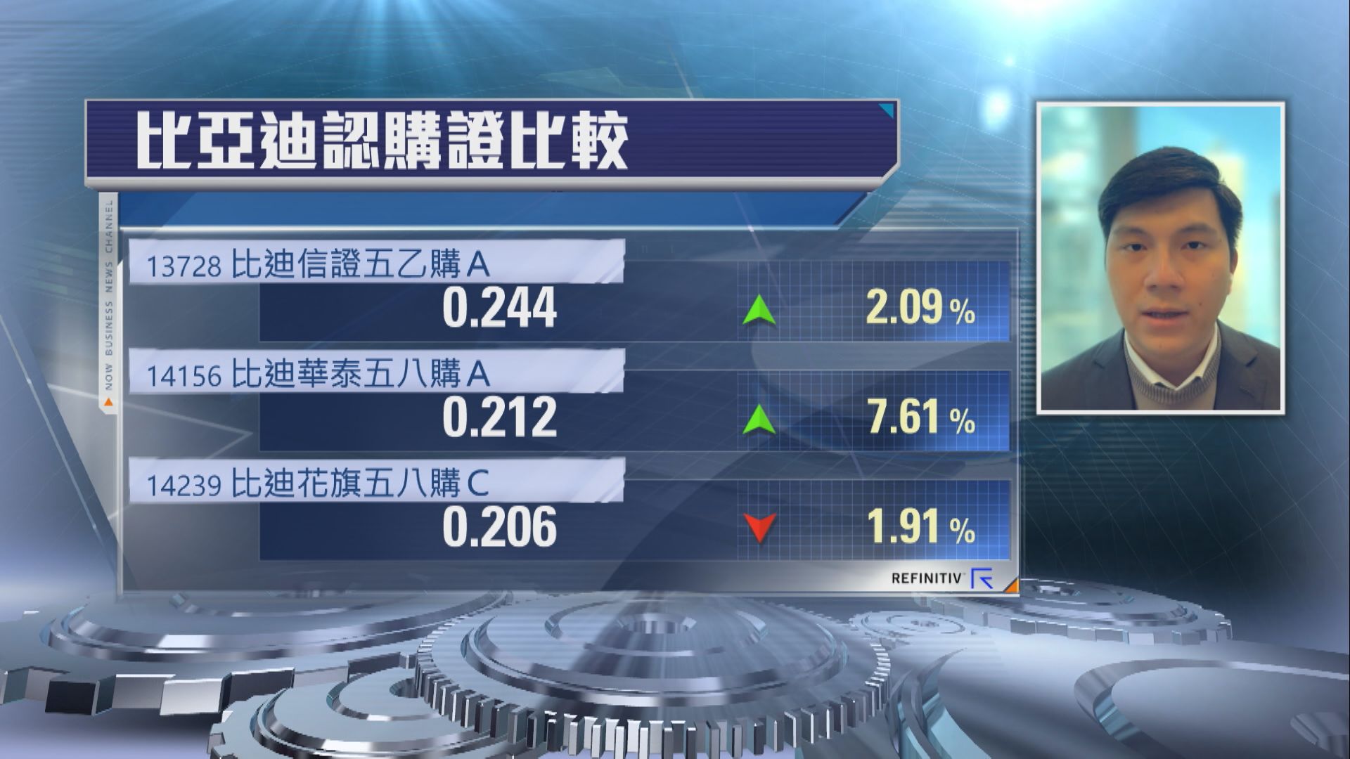 中信證券國際股權衍生品銷售經理李佳原指,雖然比亞迪股價今日表現唔錯,但如果睇埋對上3個交易日,表現相對其他汽車股係落後,包括消息傳出後曾炒高10%嘅理想汽車(02015)及小鵬汽車(09896),表現都好過比亞迪,所以今日追好倉嘅資金都比較積極。