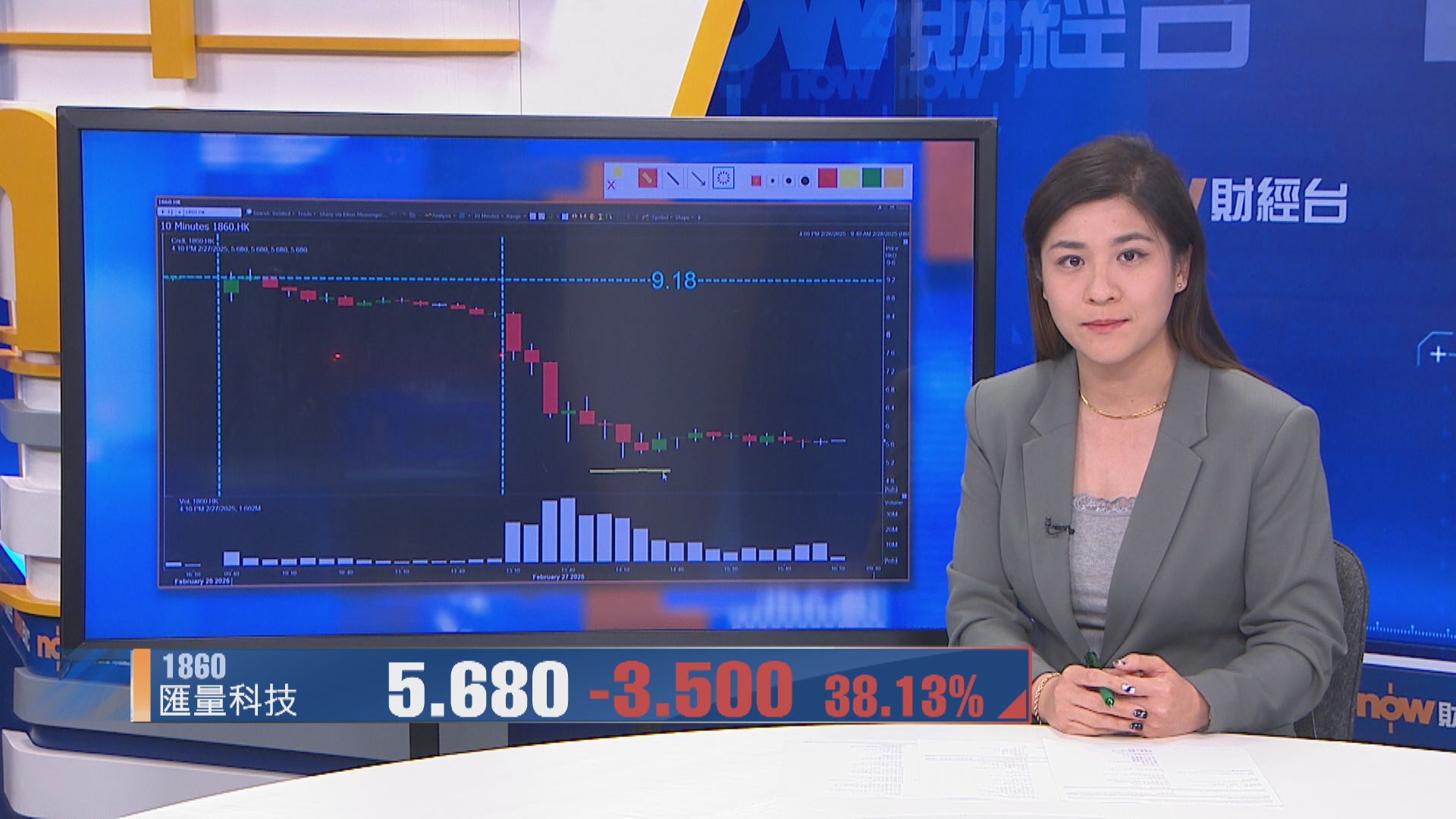 【Now財經台】匯量科技(01860)股價今早(27日)低開3.5%後,早市走勢反覆,但集團中午出發通告後,股價插水式下滑,一度瀉42%,低見5.32元,收市報5.68元,重挫38%,成交股數較過去100日平均增6倍。