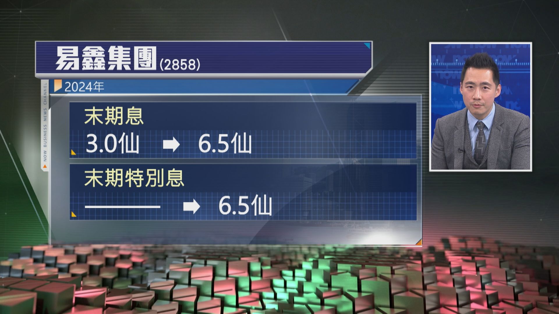 【Now財經台】易鑫集團(02858)去年經調整盈利增長18.5%,末期息連特別息共13仙。