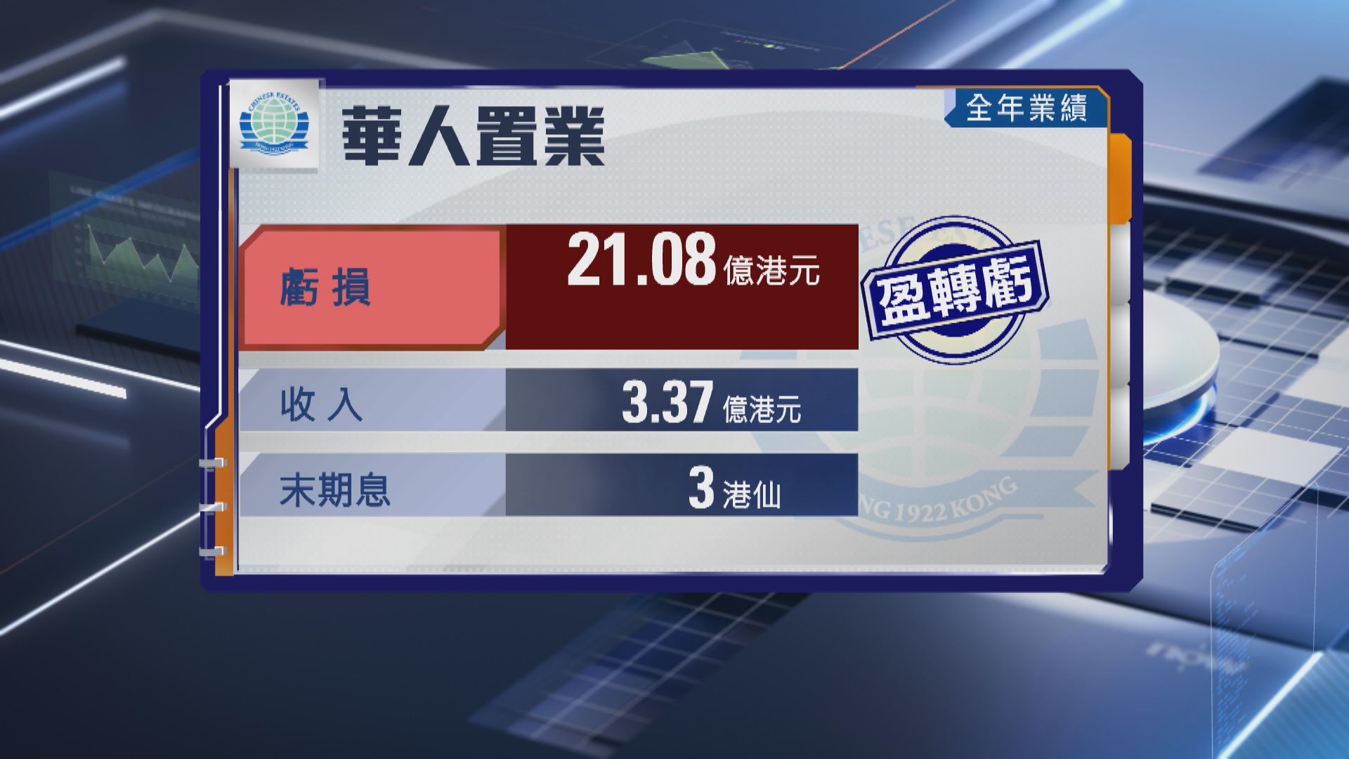 【Now財經台】華人置業(00127)去年業績由盈轉虧。