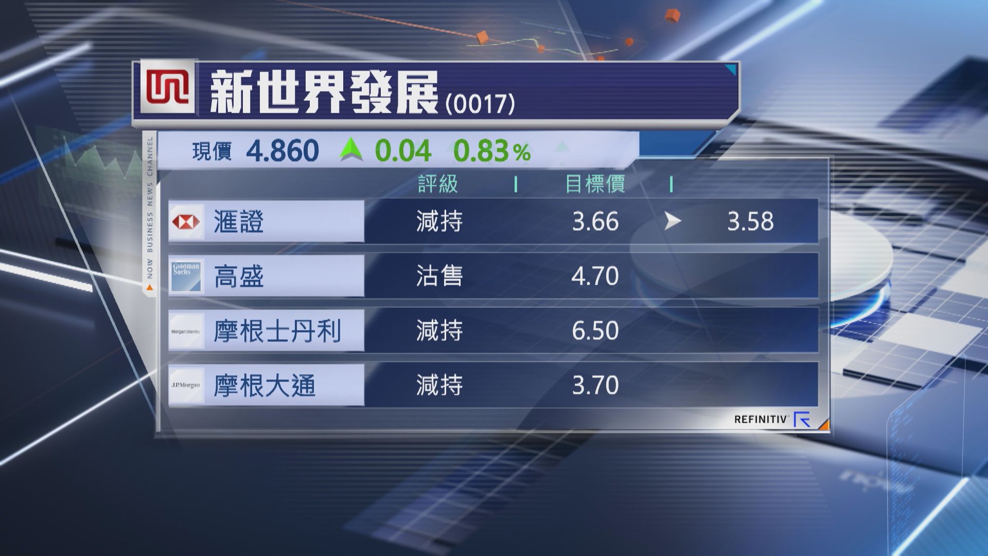 滙豐證券下調新世界目標價2%至3.58元,評級「減持」。