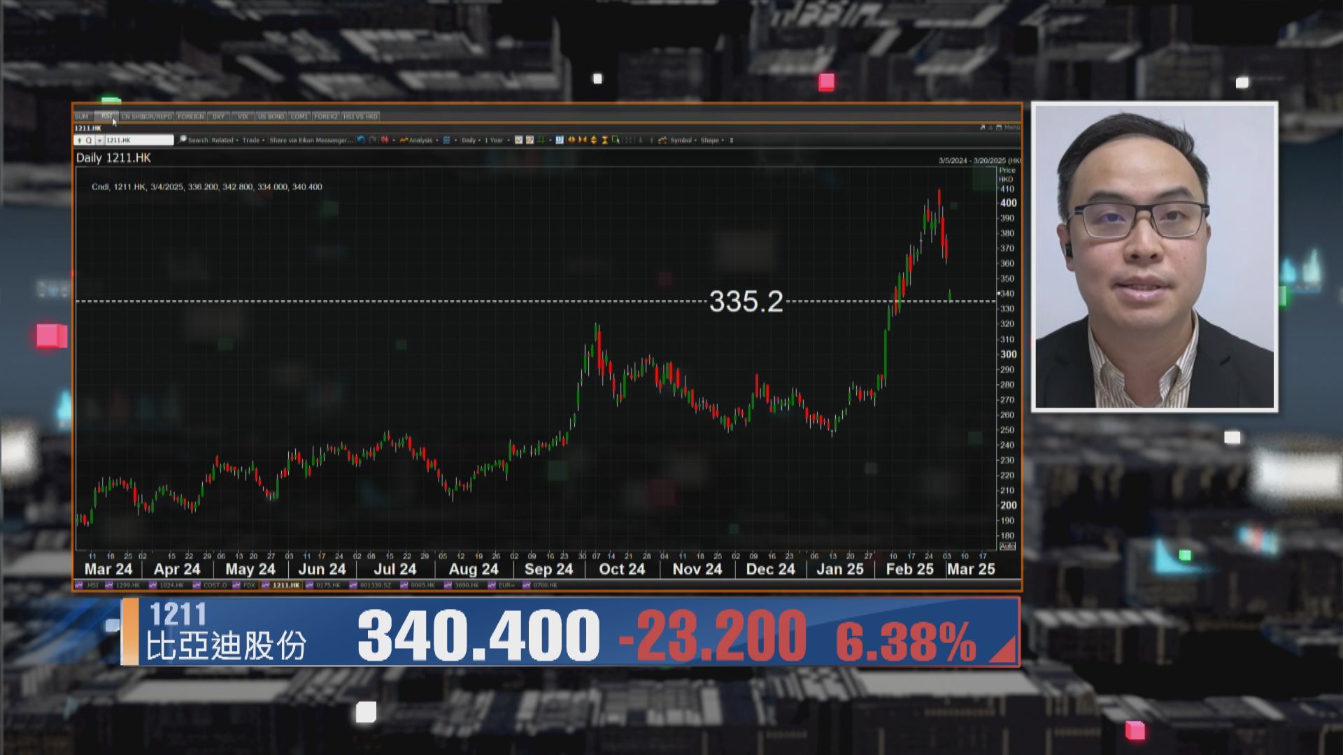佢又話,比亞迪股價仍守到配股價,反映市場冇太大負面反應,雖然港股仍處於急升後調整格局,但由於比亞迪基本面較好,所以問題唔大。