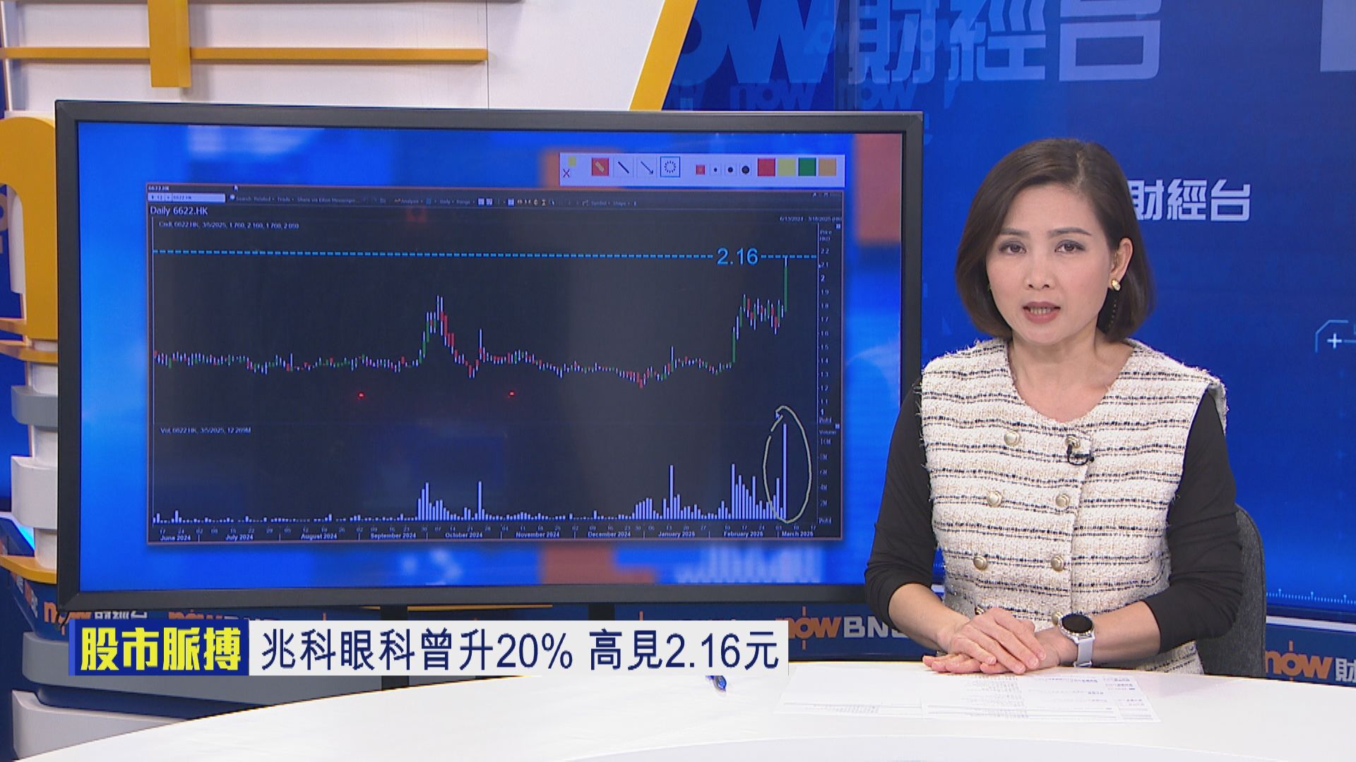 【Now財經台】兆科眼科(06622)股價今日(5日)最多升20%,高見2.16元,升上去年2月初以來高位,收市報2.09元,仍大升近17%,成交亦急增。