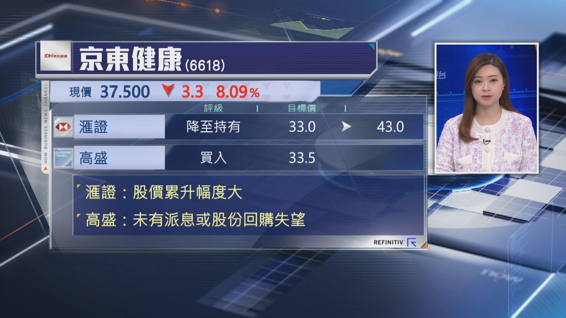 【Now財經台】滙豐證券下調京東健康(06618)評級,但上調目標價。