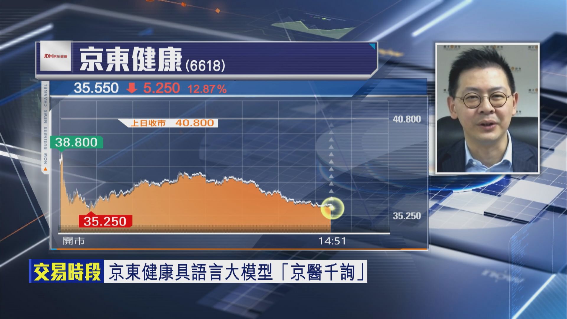 【Now財經台】京東系昨日(6日)放榜後,3隻股份嘅股價今日(7日)都要跌,其中,京東健康(06618)一度重挫逾13%,低見35.25元,公司表示,未來針對人工智能(AI)及擴張線下業務,會有一個較長嘅投入期,有大行擔心集團資本開支大增,加上內地低息環境令利息收入減少,繼而影響公司盈利,不過,發展AI可提升業務效率,大行嘅擔心係咪過慮?