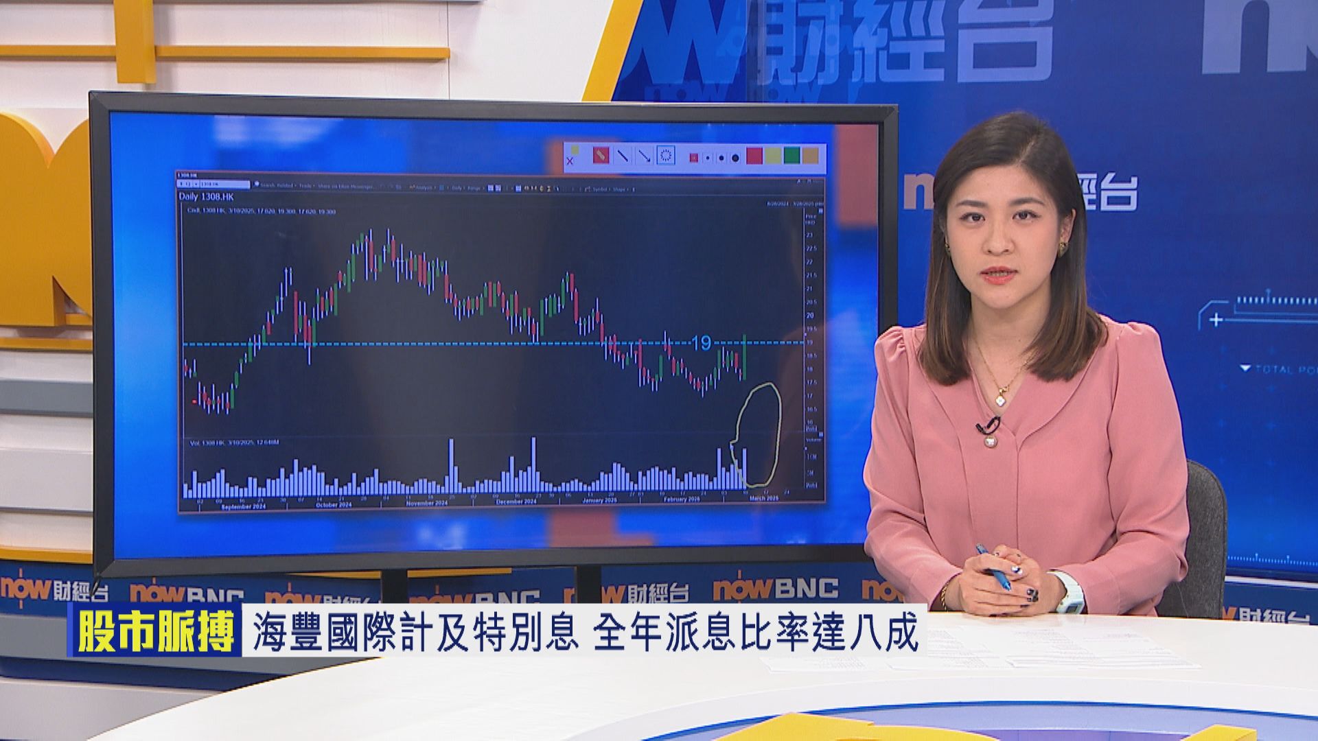 【Now財經台】海豐國際(01308)今日(10日)逆市造好,中午出完業績後,升幅擴大,最終以全日高位收市,報19.3元,升8.4%,成交股數較過去100日同時段平均增約2倍,成交金額逾2.3億元。