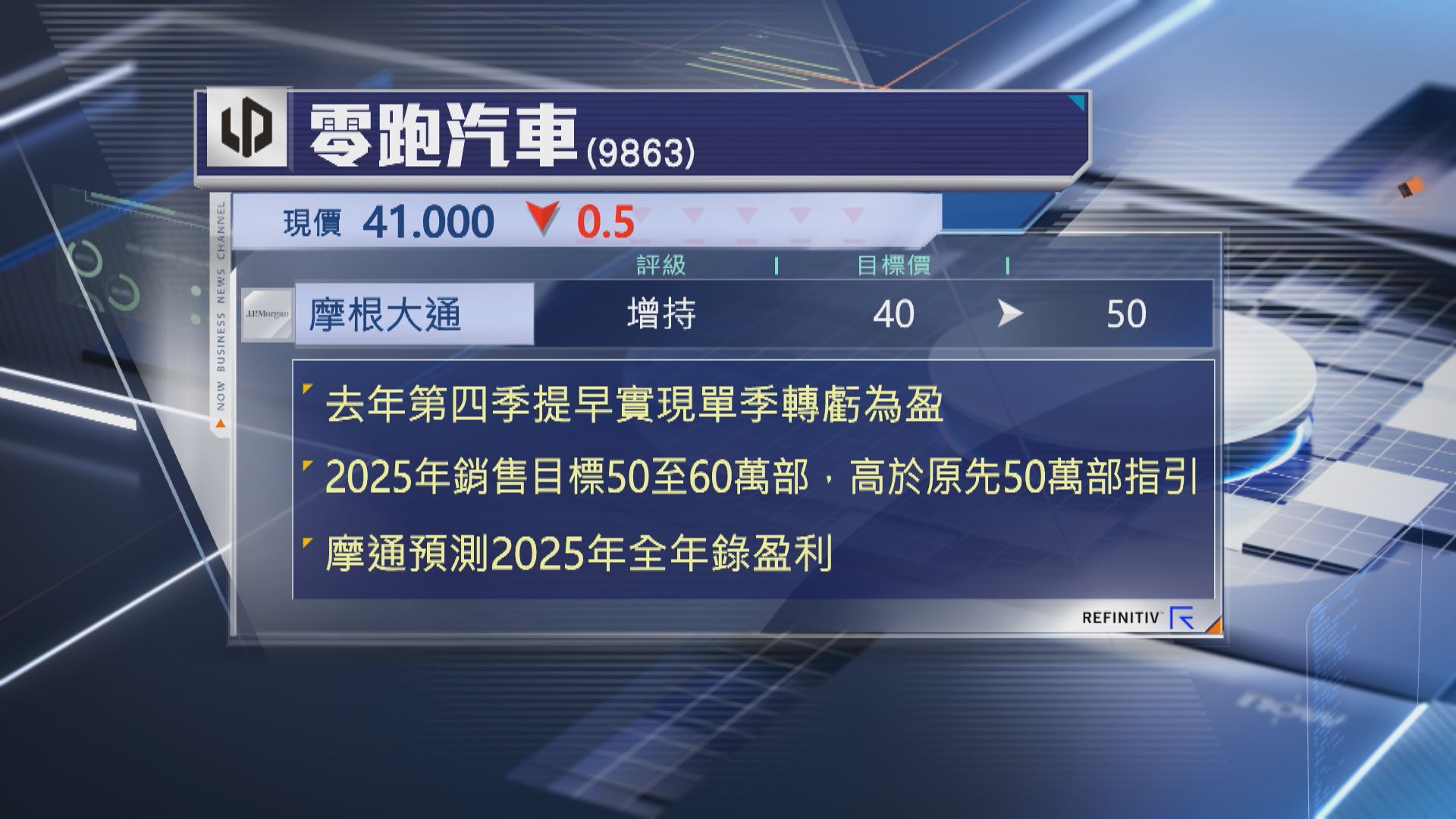 【Now財經台】零跑汽車(09863)提早實現季度盈利,獲摩根大通上調目標價25%。