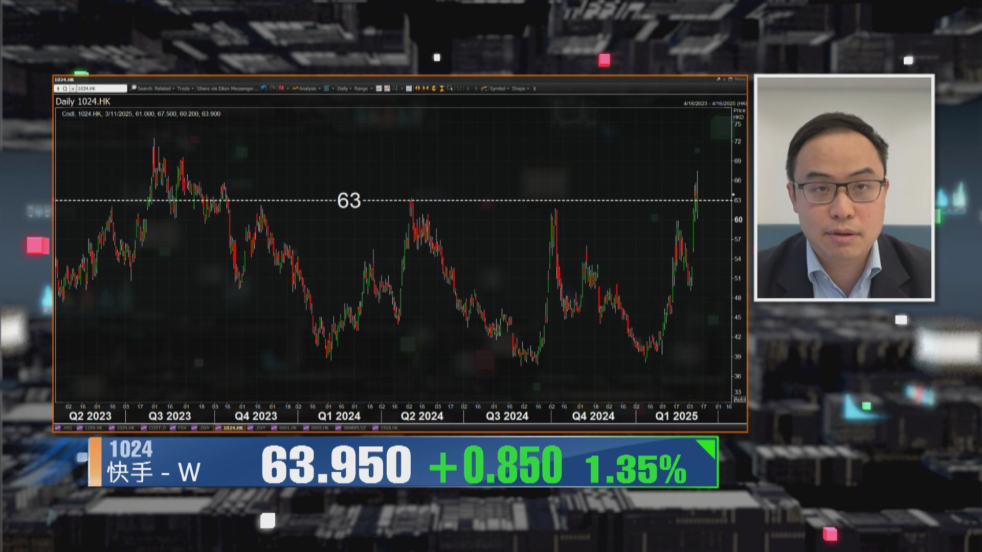 富途證券首席分析師譚智樂指,短線而言,快手的確有條件追落後,加上相對其他大型科技股,快手係比較平。佢又話,快手之前公布嘅生成式人工智能(Gen AI)「可靈AI」係一大突破,市場至今仍然炒作緊呢個因素,雖然「可靈AI」呢個消息已公布咗1個月,但相信快手短線仍會係較強勢嘅科技股,只要股價企穩60元樓上,暫時仍可以繼續睇好。