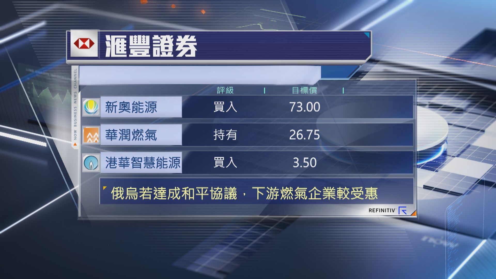 不過,假設和平協議順利達成後,預計因為供應增加、貿易恢復正常,全球的原油及天然氣價格將會面臨下跌壓力,而中國自2022年起,由俄羅斯以折扣價輸入原油,亦會因為停火協議,可能令折扣出現變動,預計油氣成本下跌後,內地下游燃氣企業會最受惠,看好新奧能源(02688)、華潤燃氣(01193)及港華智慧能源(01083),但未有調整評級與目標價。