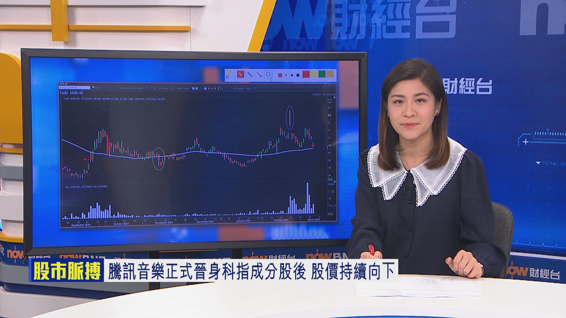 【Now財經台】騰訊音樂(01698)晉身成為科指成分股第3日,股價持續向下,今日(12日)低開6%,開市已經失守50元。由於換馬關係,上周五(7日)成交量特別大,今日近半日成交股數都有約6000萬股,金額2800萬元。