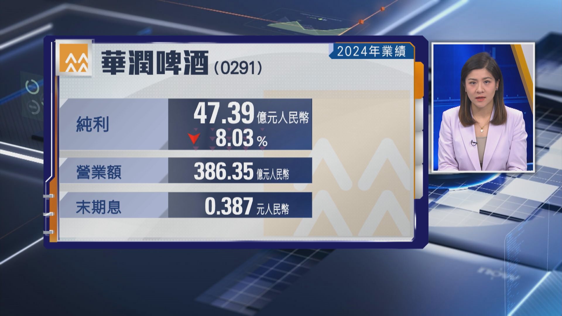 【Now財經台】華潤啤酒(00291)去年少賺8%,遜預期。