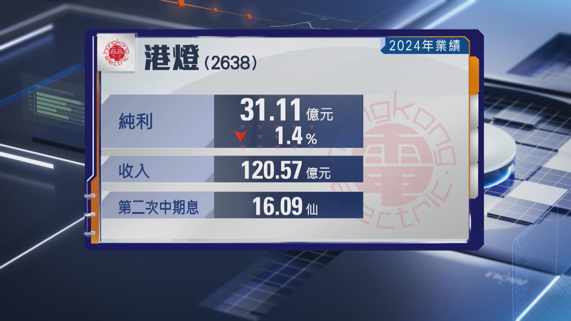 【公用股業績】港燈去年賺逾31億 第二次中期息16.09仙