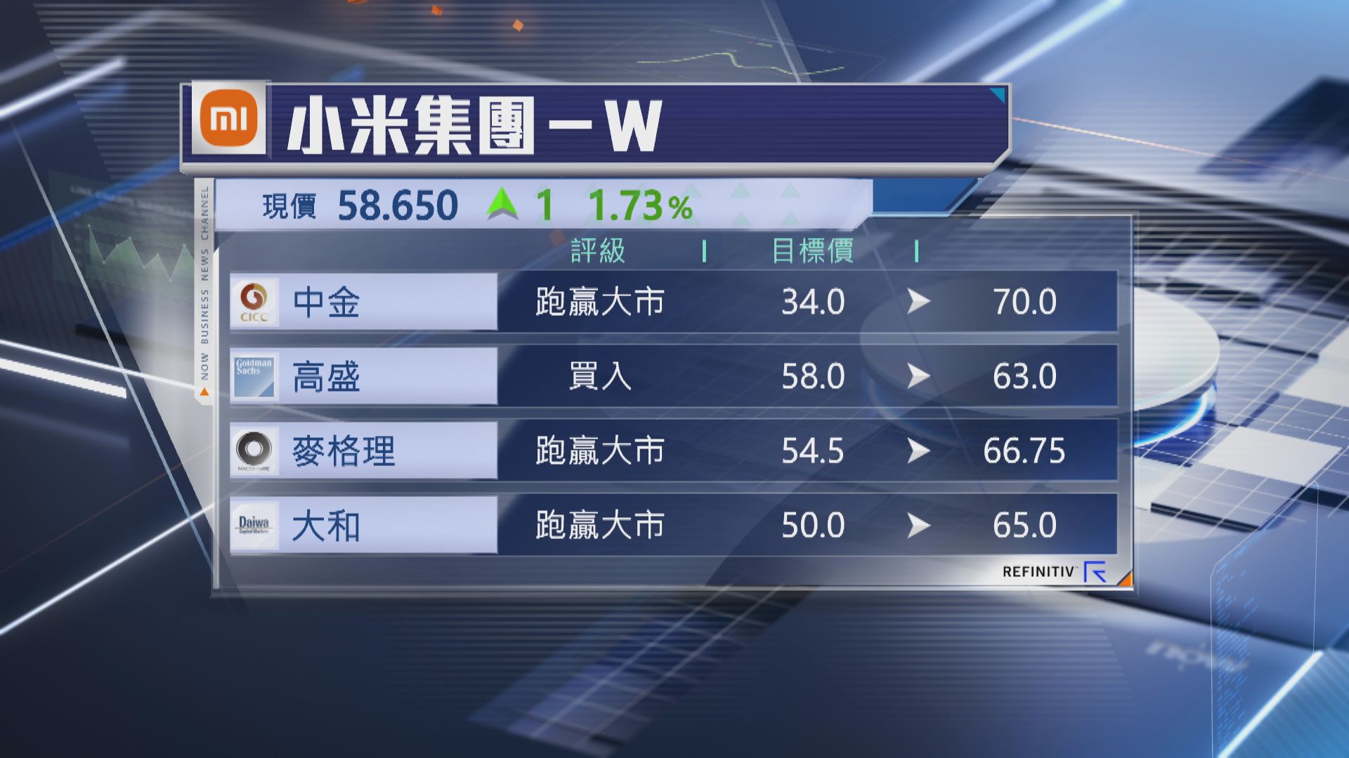 【Now財經台】小米集團(01810)業績後獲多家大行上調目標價,包括中金、高盛、麥格理及大和等。
