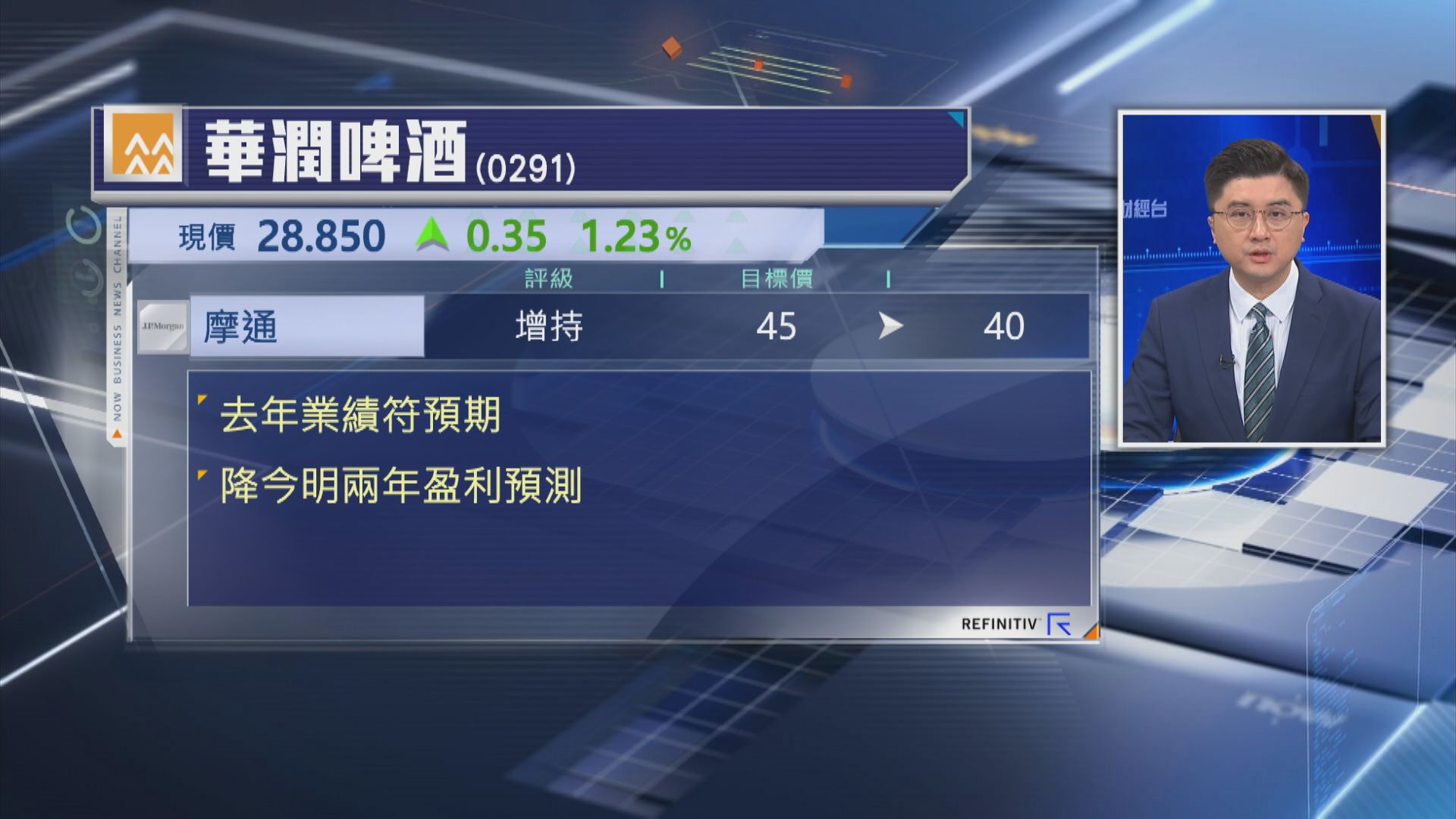 【Now財經台】摩根大通下調華潤啤酒(00291)盈利預測及目標價。