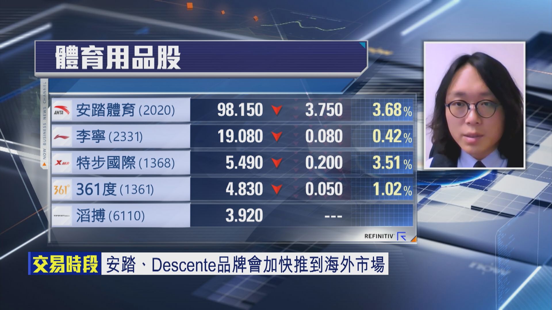 【Now財經台】安踏體育(02020)今日(19日)中午出咗業績,收入按年增長13%,去年就多賺逾50%,集團去年加快海外市場發展,將安踏及Descente品牌推去海外市場,並以東南亞市場為首站,其中,安踏品牌更推到中東、北美、歐州及非洲等市場,究竟依家係咪向海外推廣嘅好時機?加大資本及推廣開支會唔會令毛利率受壓?