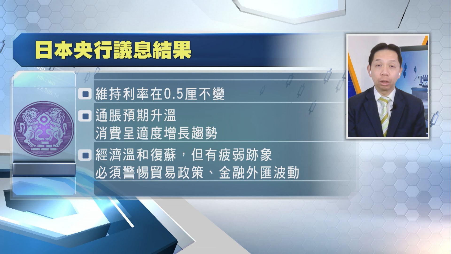 【Now財經台】今個星期係「超級央行周」,全球主要央行會舉行議息會議,其中,日本央行率先公布議息結果,維持利率不變,並指當地通脹預期升溫,消費適度增長,經濟亦溫和復甦,不過,依家日本通脹率4%,但利率維持不變,係咪反映日央行擔心經濟前景多過通脹?