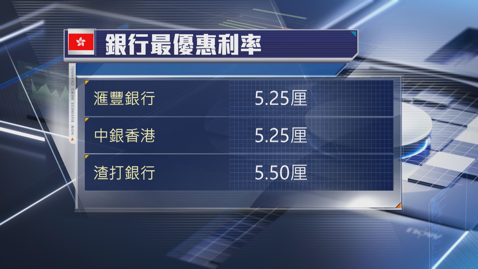 其中,滙豐銀行及中銀香港(02388)最優惠利率維持5.25厘,渣打銀行則維持5.5厘。此外,3家銀行的港元儲蓄戶口利率亦維持不變。