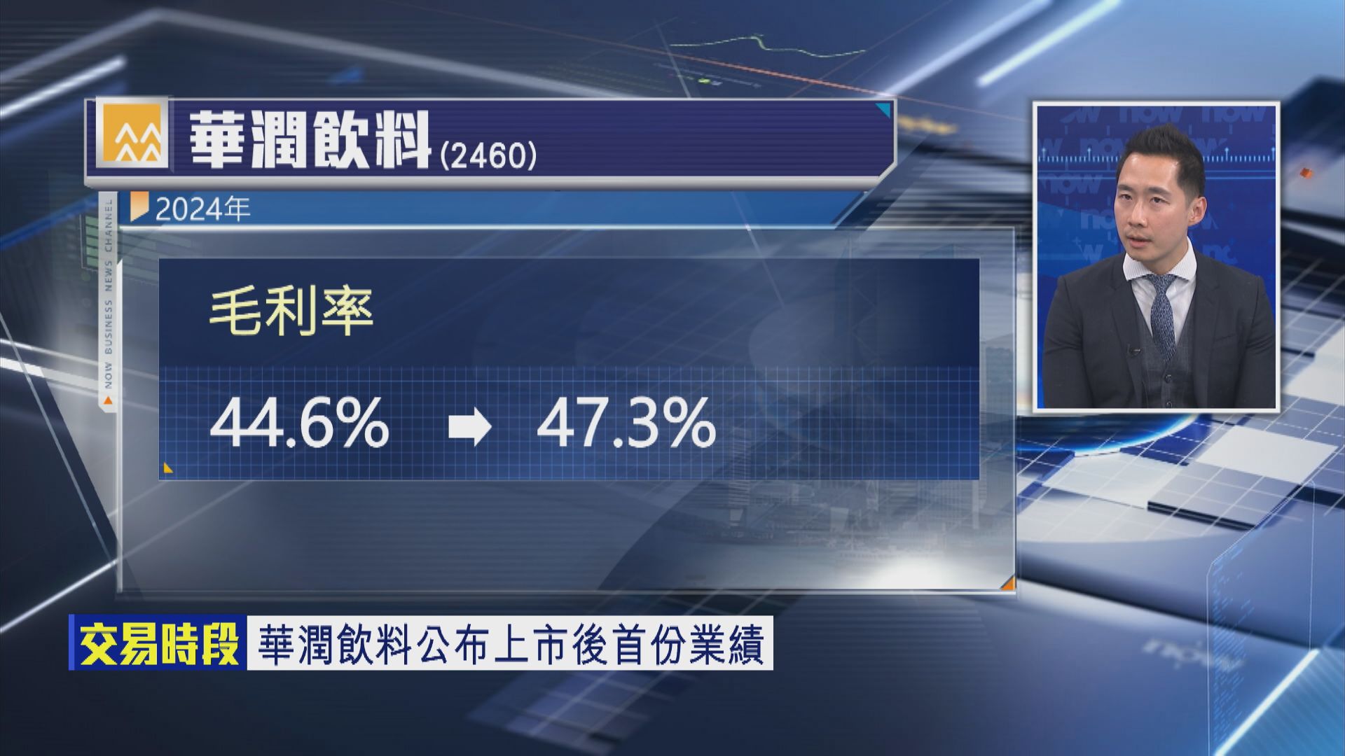 【Now財經台】華潤飲料(02460)今日(21日)派咗上市後首份成績表,去年多賺23%,毛利率升至47.3%,末期連特別息合共派0.483元人仔,相比同業如農夫山泉(09633)、中國旺旺(00151),華潤飲料毛利率較低,未來有幾大提升空間?