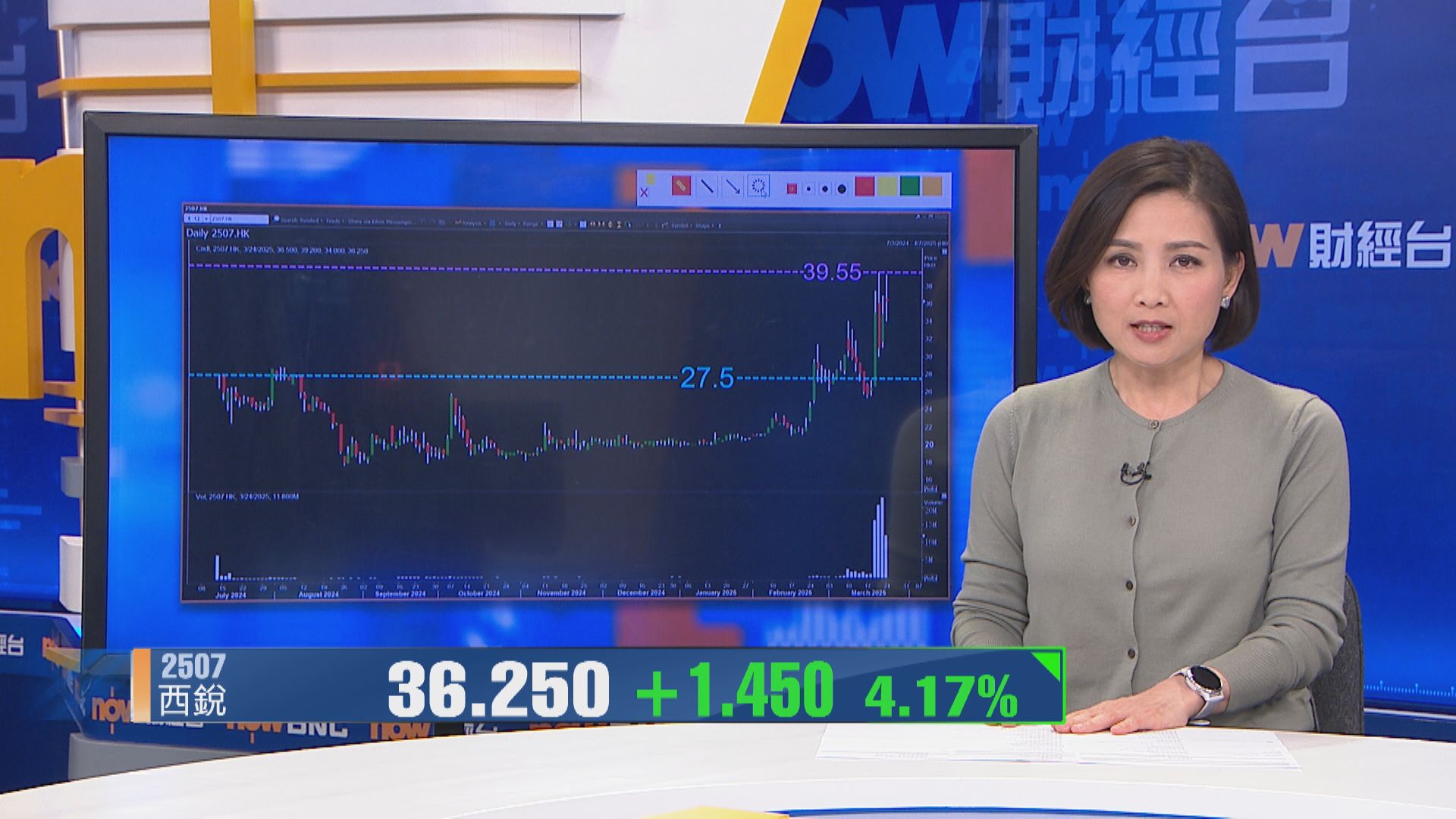 【Now財經台】半新股西銳(02507)今日(24日)將會派上市後首份全年成績表,股價今日大部分時間向上,早市一度升逾12%,高見39.2元,午後曾短暫倒跌,收市升逾4%,報36.25元。